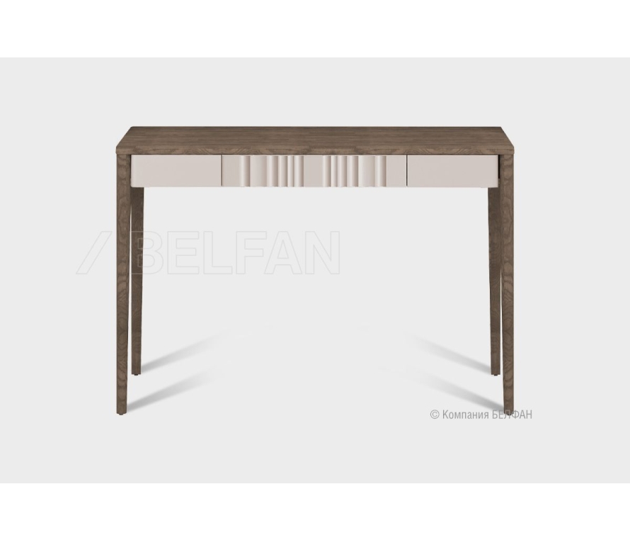Коллекция «Меридиан» — это мебель, которая вдохновляет каждый день. Минималистичные формы, высокие ножки, изысканная позолоченная фурнитура и знаменитые волнообразные фасады, напоминающие драпировку атласной ткани, превращают привычные предметы в интерьерные шедевры. Эта коллекция создана для тех, кто ценит гармонию линий, мягкость фактур и элегантный стиль. Туалетный стол «Меридиан» с декором — это не просто столик для ухода за собой. Это ваш личный островок красоты и вдохновения. Его элегантная форма и выразительный декоративный фасад делают стол центральным элементом спальни или гардеробной. Функциональные особенности: ? Габариты: ширина 1125 мм ? высота 760 мм ? глубина 550 мм — компактный и удобный формат для комфортной бьюти-зоны. ? Выдвижной ящик для хранения косметики или любимых мелочей. ? Крашения: огромный выбор стильных сочетаний — от пастельных до насыщенных древесных оттенков. Экологичность и материалы: ? Стол изготовлен из 100% массива дуба + МДФ — прочность, стабильность, тактильная теплотность. ? Покрытие: краски на водной основе + масло из натуральных компонентов. Используемые покрытия полностью безопасны, подходят для жилых помещений, а натуральные масла сохраняют тёплую тактильность поверхности. В интерьере Этот стол придаст любой спальне изысканность и лёгкость. Высокие ножки зрительно облегчают пространство, а волнообразный фасад задаёт декоративный ритм. Особенно красиво сочетается с мягким текстилем и светлым фоном. Рекомендации по сочетанию ? Внутри коллекции «Меридиан»: прекрасно сочетается с кроватью с мягким изголовьем, комодом 6 и прикроватными тумбами — создаёт гармоничное пространство спальни. ? Сопутствующие аксессуары: зеркало в раме из массива дуба или в пастельном цвете, пуф с мягкой обивкой, настольная лампа с тёплым светом. Рекомендация от BELFAN: Установите стол в зоне с хорошим естественным или акцентным освещением. Для ухода за поверхностями используйте мягкую ткань и средства, рекомендованные для мебели с масляным покрытием.