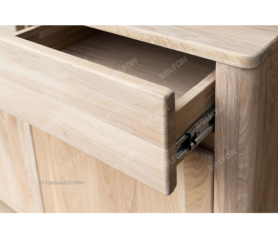 Особенности двухдверной тумбы «Норд» (Nord): ? Тумба изготовлена из 100% массива дуба. ? Современный стиль – экоминимализм. ? Безупречный минималистичный дизайн, который идеально подойдет для квартирного и загородного решения. ? Прямые скруглённые формы идеально дополнят любой современный интерьер. ? Цельные скругленные боковины изделия из благородного массива дуба, которые придают формам мягкость и утонченность. ? Гладкие фасады без лицевой фурнитуры с интегрированными скруглёнными нишами для удобства открывания. ? Ярко-выраженный природный рисунок натурального дерева, искусно подобранный мастерами вручную. ? Тумба универсальна и функциональна для использования в гостиной, столовой, спальной и других комнатах. ? Надежные направляющие с доводчиками полного выдвижения (европейского пр-ва) обеспечат плотное и бесшумное закрывание ящиков и комфорт ежедневного использования. ? Экологичная отделка: натуральный дуб пропитан бейц маслом (европейского пр-ва) на натуральной основе. На поверхности образуется защитная гидрофобная пленка, благодаря которой покрытие впитывается в структуру дерева, придавая дереву стойкую защиту и подчеркивает природную красоту рисунка. Мебель из массива дерева необыкновенно красива, добротна и славится своим долголетием. Однако, чтобы продлить этот срок, сохранить мебельным изделиям первоначальную элегантность и отличный внешний вид, за ней необходим надлежащий уход. Если у вас появились царапины, следы от кружки или мокрой тряпки, то сервис-бокс от компании BELFAN поможет вам вернуть мебели первозданный вид даже в домашних условиях. Данный сервис-бокс подходит только для мебели в крашении бейц-масло. Схема тумбы: Видеообзор двухдверная тумба Норд