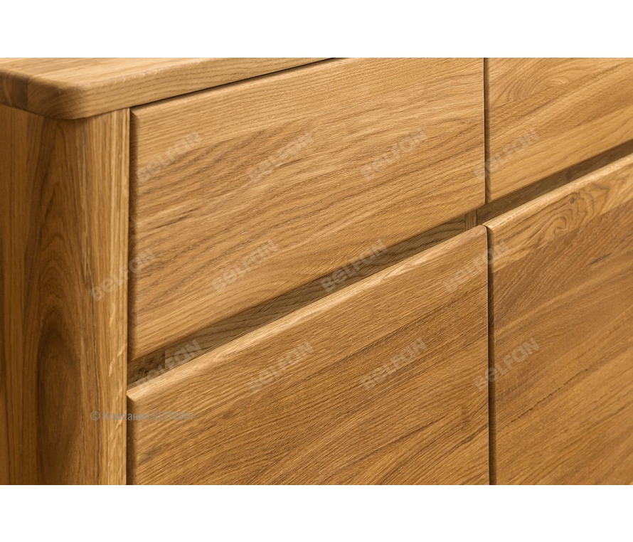 Особенности двухдверной тумбы «Норд» (Nord): ? Тумба изготовлена из 100% массива дуба. ? Современный стиль – экоминимализм. ? Безупречный минималистичный дизайн, который идеально подойдет для квартирного и загородного решения. ? Прямые скруглённые формы идеально дополнят любой современный интерьер. ? Цельные скругленные боковины изделия из благородного массива дуба, которые придают формам мягкость и утонченность. ? Гладкие фасады без лицевой фурнитуры с интегрированными скруглёнными нишами для удобства открывания. ? Ярко-выраженный природный рисунок натурального дерева, искусно подобранный мастерами вручную. ? Тумба универсальна и функциональна для использования в гостиной, столовой, спальной и других комнатах. ? Надежные направляющие с доводчиками полного выдвижения (европейского пр-ва) обеспечат плотное и бесшумное закрывание ящиков и комфорт ежедневного использования. ? Экологичная отделка: натуральный дуб пропитан бейц маслом (европейского пр-ва) на натуральной основе. На поверхности образуется защитная гидрофобная пленка, благодаря которой покрытие впитывается в структуру дерева, придавая дереву стойкую защиту и подчеркивает природную красоту рисунка. Мебель из массива дерева необыкновенно красива, добротна и славится своим долголетием. Однако, чтобы продлить этот срок, сохранить мебельным изделиям первоначальную элегантность и отличный внешний вид, за ней необходим надлежащий уход. Если у вас появились царапины, следы от кружки или мокрой тряпки, то сервис-бокс от компании BELFAN поможет вам вернуть мебели первозданный вид даже в домашних условиях. Данный сервис-бокс подходит только для мебели в крашении бейц-масло. Схема тумбы: Видеообзор двухдверная тумба Норд