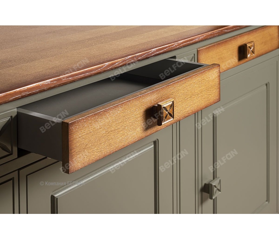 Трехдверная тумба Brianson отлично подойдет для гостиной или столовой. Тумба оснащена тремя вместительными отделениями с дверцей, а так же выдвижными ящиками. Вы сможете без труда разместить всю кухонную утварь или другие предметы Схема тумбы: