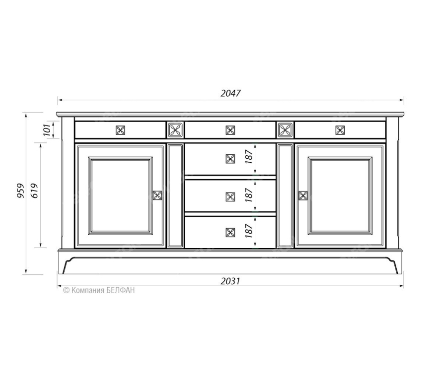 Тумба 3-х секционная "Brianson" отлично подойдет для гостиной или столовой. Тумба оснащена тремя вместительными секциями с дверцей, и одна с выдвижными ящиками. Вы сможете без труда разместить всю кухонную утварь или другие предметы.