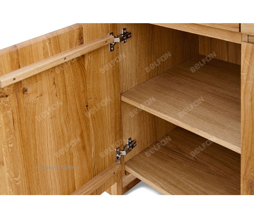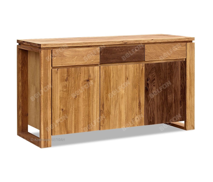 Тумба «Берген» В-33 выполнена из натурального дуба, обработанного бейц-маслом, за счет чего сохранена природная фактура дерева. Тумба оснащена вместительным отделением с полкой, а так же тремя выдвижными ящиками. Свойственное для стиля Лофт отсутствие фурнитуры никак не сказалось на функциональности, фасады оборудованы специальными углублениям, благодаря чему дверцы и ящики легко открывать. Особенности тумбы «Берген» (Bergen) В-33: ? Экологичная отделка: натуральный дуб пропитан только бейц-маслом (европейского пр-ва), которое наносится вручную. На поверхности образуется защитная гидрофобная пленка, благодаря которой покрытие впитывается в структуру дерева, но не оставляет следов на одежде или предметах, которые контактируют с поверхностью. ? Изделие выполнено из массива и натурального шпона дуба. Обратите внимание, что данная мебель является крупногабаритным неразборным изделием. При заносе в помещение, лифт, дверные проемы, лестницы на второй этаж и другие узкие места могут возникнуть сложности. Обязательно проконсультируйтесь с продавцом. Мебель из массива дерева необыкновенно красива, добротна и славится своим долголетием. Однако, чтобы продлить этот срок, сохранить мебельным изделиям первоначальную элегантность и отличный внешний вид, за ней необходим надлежащий уход. Если у вас появились царапины, следы от кружки или мокрой тряпки, то сервис-бокс от компании BELFAN поможет вам вернуть мебели первозданный вид даже в домашних условиях. Данный сервис-бокс подходит только для мебели в крашении бейц-масло. Схема тумбы: Видеообзор тумба Берген В-33