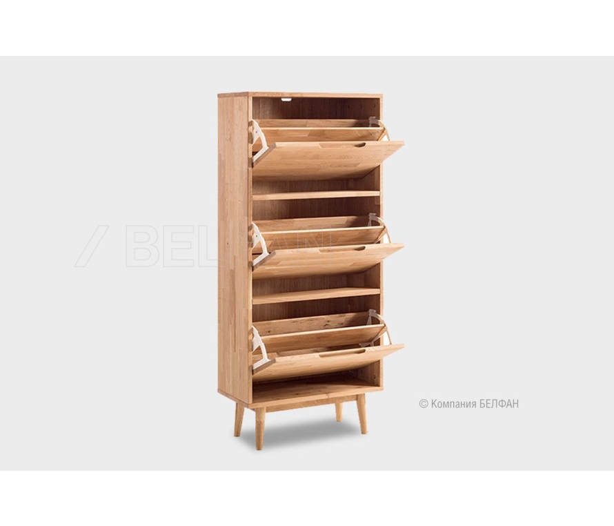 Особенности тумбы для обуви «Ирвинг» (Irving): ? Ультрамодный дизайн в стиле Mid-century modern (стиль 50-ых – 70-ых годов). ? Тумба изготовлена из массива дуба ? Стильные минималистичные ручки в виде ниш на фасадах подчёркивают стиль. ? Высота ножек позволяет с легкостью проводить уборку. Мебель из массива дерева необыкновенно красива, добротна и славится своим долголетием. Однако, чтобы продлить этот срок, сохранить мебельным изделиям первоначальную элегантность и отличный внешний вид, за ней необходим надлежащий уход. Если у вас появились царапины, следы от кружки или мокрой тряпки, то сервис-бокс от компании BELFAN поможет вам вернуть мебели первозданный вид даже в домашних условиях. Данный сервис-бокс подходит только для мебели в крашении бейц-масло.