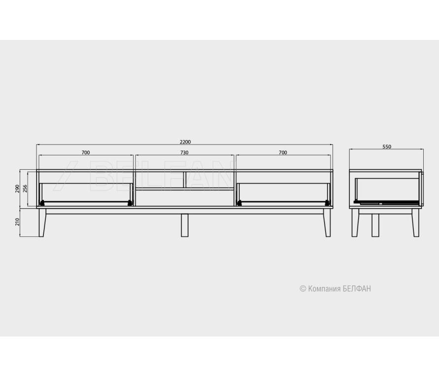 Тумба под ТВ "Chicago" 220 с полками для аудио- и видеоустройств, а также 2 больших выдвижных ящика по краям. Тумба шириной 220 см выполнена в цвете "агат" и "платина". Схема тумбы под ТВ 220:
