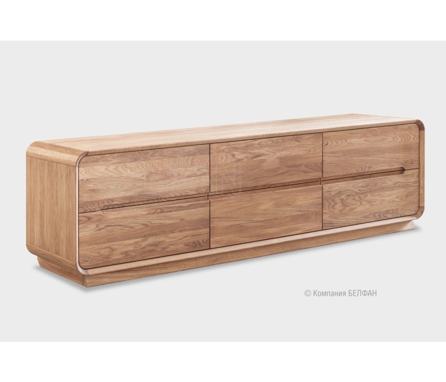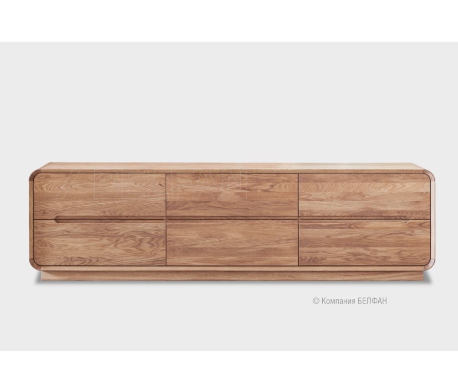 Коллекция «Монблан» — это образец современного эко-минимализма, в котором сочетаются чистота линий, уютная форма и выразительная функциональность. Округлые углы и утопленные фасады создают эффект мягкости и визуальной легкости, а высокие цоколи придают предметам изящную «парящую» эстетику. Эта мебель для тех, кто ценит спокойствие, порядок и экологичный комфорт в доме. Тумба под ТВ «Монблан» 200 — это не просто место для техники, а центр домашнего уюта и визуального баланса. Благодаря ширине 2000 мм она прекрасно подойдёт под телевизоры больших диагоналей, а её чёткая симметрия и лаконичные фасады создают ощущение порядка и уравновешенности в интерьере. ? Функциональные особенности ? Изделие оснащено 6 вместительными выдвижными ящиками, в которых удобно хранить кабели, пульты, журналы, диски или даже текстиль. Глубина ящиков — 385 мм. ? Удобные профиль-ниши вместо привычных ручек подчеркивают лаконичность дизайна и делают использование тумбы особенно комфортным. ? Изготавливается в 4-х выразительных крашениях: — бейц-масло — тёплый натуральный оттенок дерева, — белёный дуб — светлый и воздушный, — американский орех — с нежной пудровой поволокой, — графит — современный и глубокий, Натуральные материалы и экологичность ? Материал — массив дуба, покрытый экологически чистым финишем, безопасным для всей семьи. ? Эта тумба создаёт не только визуальное, но и тактильное удовольствие — её поверхность хочется трогать. В интерьере Идеально впишется в просторную гостиную или зону отдыха, поддерживая общий минималистичный стиль и подчёркивая натуральные фактуры в интерьере. Рекомендации по сочетанию: ? С другими изделиями коллекции «Монблан» — особенно с витринами, тумбами и комодами этой же серии. ? С коллекцией «Норд» или «Wallstreet» для интерьеров, где хочется добавить акценты в современное пространство. ? Идеально комбинируется с мягкой мебелью BELFAN в нейтральных тканях — например, креслом «Ронда» или диваном «Ferre». Рекомендации от BELFAN Тумба поставляется в собранном виде. Мы рекомендуем профессиональную установку, особенно при размещении техники с большим весом. Мебель из массива дерева необыкновенно красива, добротна и славится своим долголетием. Однако, чтобы продлить этот срок, сохранить мебельным изделиям первоначальную элегантность и отличный внешний вид, за ней необходим надлежащий уход. Если у вас появились царапины, следы от кружки или мокрой тряпки, то сервис-бокс от компании BELFAN поможет вам вернуть мебели первозданный вид даже в домашних условиях. Данный сервис-бокс подходит только для мебели в крашении бейц-масло. Схема тумбы: