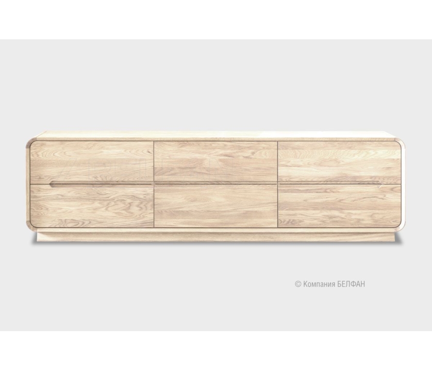 Коллекция «Монблан» — это образец современного эко-минимализма, в котором сочетаются чистота линий, уютная форма и выразительная функциональность. Округлые углы и утопленные фасады создают эффект мягкости и визуальной легкости, а высокие цоколи придают предметам изящную «парящую» эстетику. Эта мебель для тех, кто ценит спокойствие, порядок и экологичный комфорт в доме. Тумба под ТВ «Монблан» 200 — это не просто место для техники, а центр домашнего уюта и визуального баланса. Благодаря ширине 2000 мм она прекрасно подойдёт под телевизоры больших диагоналей, а её чёткая симметрия и лаконичные фасады создают ощущение порядка и уравновешенности в интерьере. ? Функциональные особенности ? Изделие оснащено 6 вместительными выдвижными ящиками, в которых удобно хранить кабели, пульты, журналы, диски или даже текстиль. Глубина ящиков — 385 мм. ? Удобные профиль-ниши вместо привычных ручек подчеркивают лаконичность дизайна и делают использование тумбы особенно комфортным. ? Изготавливается в 4-х выразительных крашениях: — бейц-масло — тёплый натуральный оттенок дерева, — белёный дуб — светлый и воздушный, — американский орех — с нежной пудровой поволокой, — графит — современный и глубокий, Натуральные материалы и экологичность ? Материал — массив дуба, покрытый экологически чистым финишем, безопасным для всей семьи. ? Эта тумба создаёт не только визуальное, но и тактильное удовольствие — её поверхность хочется трогать. В интерьере Идеально впишется в просторную гостиную или зону отдыха, поддерживая общий минималистичный стиль и подчёркивая натуральные фактуры в интерьере. Рекомендации по сочетанию: ? С другими изделиями коллекции «Монблан» — особенно с витринами, тумбами и комодами этой же серии. ? С коллекцией «Норд» или «Wallstreet» для интерьеров, где хочется добавить акценты в современное пространство. ? Идеально комбинируется с мягкой мебелью BELFAN в нейтральных тканях — например, креслом «Ронда» или диваном «Ferre». Рекомендации от BELFAN Тумба поставляется в собранном виде. Мы рекомендуем профессиональную установку, особенно при размещении техники с большим весом. Мебель из массива дерева необыкновенно красива, добротна и славится своим долголетием. Однако, чтобы продлить этот срок, сохранить мебельным изделиям первоначальную элегантность и отличный внешний вид, за ней необходим надлежащий уход. Если у вас появились царапины, следы от кружки или мокрой тряпки, то сервис-бокс от компании BELFAN поможет вам вернуть мебели первозданный вид даже в домашних условиях. Данный сервис-бокс подходит только для мебели в крашении бейц-масло. Схема тумбы: