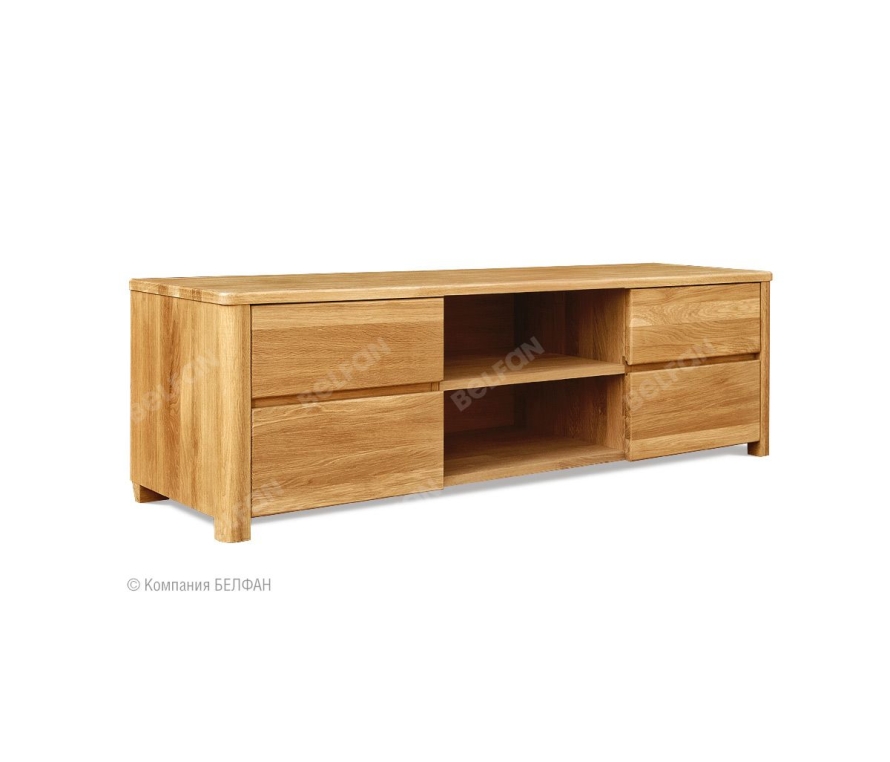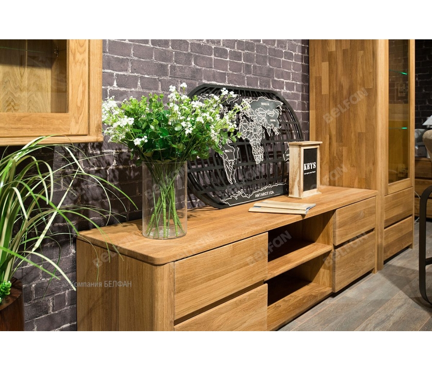 Тумба под ТВ из коллекции «Норд» - это сочетание простоты, элегантности и лаконичности. Покрытие бейц-маслом подчеркивает природную красоту массива дуба: это делает тумбу универсальным предметом мебели и позволяет Вам сочетать ее с мебелью практически в любом стиле. Оптимальная высота тумбы позволит смотреть телевизор с комфортом, не напрягая глаза. Благодаря функциональному наполнению она может служить и как дополнительное место для хранения: четыре выдвижных ящика вместят нужные мелочи, а две ниши – аудио и видео технику. Особенности тумбы под ТВ «Норд» (Nord): ? Тумба изготовлена из 100% массива дуба. ? Современный стиль – экоминимализм. ? Безупречный минималистичный дизайн, который идеально подойдет для квартирного и загородного решения. ? Прямые скруглённые формы идеально дополнят любой современный интерьер. ? Цельные скругленные боковины изделия из благородного массива дуба, которые придают формам мягкость и утонченность. ? Гладкие фасады без лицевой фурнитуры с интегрированными скруглёнными нишами для удобства открывания. ? Ярко-выраженный природный рисунок натурального дерева, искусно подобранный мастерами вручную. ? Оптимальная высота тумбочки позволяет разместить на нем телевизор на комфортной для просмотра высоте, а благодаря достаточной ширине (160 см.) рядом можно поставить декоративные аксессуары, положить журналы. ? Для аудио-видео техники предусмотрены две ниши (размер каждой ниши: Ш55 х В18 х Г44 см). ? Надежные направляющие с доводчиками полного выдвижения (европейского пр-ва) обеспечат плотное и бесшумное закрывание ящиков и комфорт ежедневного использования. ? Экологичная отделка: натуральный дуб пропитан бейц маслом (европейского пр-ва) на натуральной основе. На поверхности образуется защитная гидрофобная пленка, благодаря которой покрытие впитывается в структуру дерева, придавая дереву стойкую защиту и подчеркивает природную красоту рисунка. Мебель из массива дерева необыкновенно красива, добротна и славится своим долголетием. Однако, чтобы продлить этот срок, сохранить мебельным изделиям первоначальную элегантность и отличный внешний вид, за ней необходим надлежащий уход. Если у вас появились царапины, следы от кружки или мокрой тряпки, то сервис-бокс от компании BELFAN поможет вам вернуть мебели первозданный вид даже в домашних условиях. Данный сервис-бокс подходит только для мебели в крашении бейц-масло. Примерьте тумбу под ТВ «Норд» у себя дома! Пройдите по ссылке. Схема тумбы под ТВ «Норд» (Nord): Видеообзор тумба под ТВ Норд