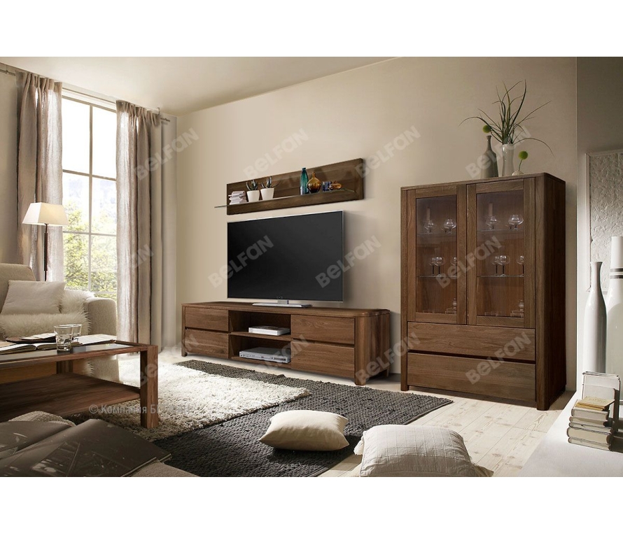 Тумба под ТВ из коллекции «Норд» - это сочетание простоты, элегантности и лаконичности. Покрытие бейц-маслом подчеркивает природную красоту массива дуба: это делает тумбу универсальным предметом мебели и позволяет Вам сочетать ее с мебелью практически в любом стиле. Оптимальная высота тумбы позволит смотреть телевизор с комфортом, не напрягая глаза. Благодаря функциональному наполнению она может служить и как дополнительное место для хранения: четыре выдвижных ящика вместят нужные мелочи, а две ниши – аудио и видео технику. Особенности тумбы под ТВ «Норд» (Nord): ? Тумба изготовлена из 100% массива дуба. ? Современный стиль – экоминимализм. ? Безупречный минималистичный дизайн, который идеально подойдет для квартирного и загородного решения. ? Прямые скруглённые формы идеально дополнят любой современный интерьер. ? Цельные скругленные боковины изделия из благородного массива дуба, которые придают формам мягкость и утонченность. ? Гладкие фасады без лицевой фурнитуры с интегрированными скруглёнными нишами для удобства открывания. ? Ярко-выраженный природный рисунок натурального дерева, искусно подобранный мастерами вручную. ? Оптимальная высота тумбочки позволяет разместить на нем телевизор на комфортной для просмотра высоте, а благодаря достаточной ширине (160 см.) рядом можно поставить декоративные аксессуары, положить журналы. ? Для аудио-видео техники предусмотрены две ниши (размер каждой ниши: Ш55 х В18 х Г44 см). ? Надежные направляющие с доводчиками полного выдвижения (европейского пр-ва) обеспечат плотное и бесшумное закрывание ящиков и комфорт ежедневного использования. ? Экологичная отделка: натуральный дуб пропитан бейц маслом (европейского пр-ва) на натуральной основе. На поверхности образуется защитная гидрофобная пленка, благодаря которой покрытие впитывается в структуру дерева, придавая дереву стойкую защиту и подчеркивает природную красоту рисунка. Мебель из массива дерева необыкновенно красива, добротна и славится своим долголетием. Однако, чтобы продлить этот срок, сохранить мебельным изделиям первоначальную элегантность и отличный внешний вид, за ней необходим надлежащий уход. Если у вас появились царапины, следы от кружки или мокрой тряпки, то сервис-бокс от компании BELFAN поможет вам вернуть мебели первозданный вид даже в домашних условиях. Данный сервис-бокс подходит только для мебели в крашении бейц-масло. Примерьте тумбу под ТВ «Норд» у себя дома! Пройдите по ссылке. Схема тумбы под ТВ «Норд» (Nord): Видеообзор тумба под ТВ Норд