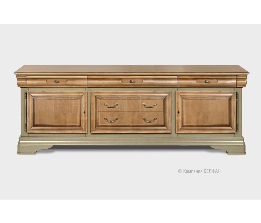 Трехдверная тумба под ТВ «Оливия» 3 из массива и шпона ольхи прекрасно впишется в гостиную как загородного дома, так и любой квартиры. Особенности тумбы под ТВ «Оливия» 3: ? Оригинальные рамочные фасады. ? Итальянская лицевая фурнитура Bosetti Marella. ? Дно выдвижных ящиков отделано велюром. Цвет ткани может разниться в зависимости от изделия. ? Тумба изготовлена из массива и шпона ольхи. ? Экологичное покрытие – окрашено эмалью и лаком на водной основе. ? В ящиках установлены надежные направляющие с доводчиками, которые обеспечат плотное и бесшумное закрывание ящиков и комфорт ежедневного использования.