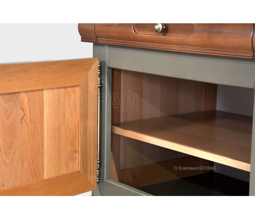 Выполненная из массива и шпона ольхи несравненная тумба под ТВ «Оливия» с нишей прекрасно впишется в гостиную как загородного дома, так и любой квартиры. Она элегантна и изысканна. Ее ширина позволяет разместить самые современные телевизоры, а на стеклянных полках можно удобно расположить всю аппаратуру. Более того ТВ тумба обладает тремя выдвижными ящиками, деликатно вписанными в столешницу и двумя нишами за закрытыми дверьми. Особенности тумбы под ТВ «Оливия»: ? Отверстия для ТВ проводов. ? Выдвижные ящики с направляющими (пр-ва Австрии) бесшумного закрывания. ? В ящиках для деликатных вещей дно отделано велюром. Цвет ткани может разниться в зависимости от изделия. ? Итальянская лицевая фурнитура Bosetti Marella. ? Экологичное покрытие - окрашено краской и лаком на водной основе.