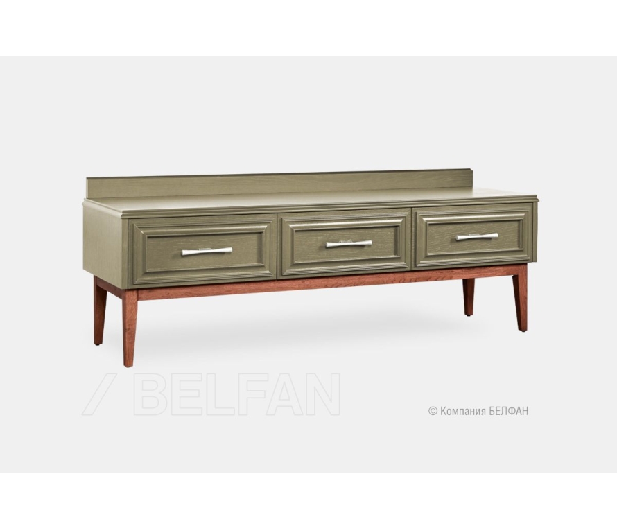 Коллекция «Сакраменто» — это мебель с ярко выраженным характером, где современный дизайн искусно переплетается с классическими формами. Четкие линии, выразительная фурнитура и глубокие оттенки создают ощущение основательности и стиля, а высокие ножки придают легкость, визуально приподнимая предметы над полом. Тумба под ТВ «Сакраменто» 3 - это элегантное соединение современного стиля и классической солидности. Фасады украшены объемными рамочными профилями, которые придают тумбе утонченную архитектурность, а изящная лицевая фурнитура в стиле коллекции подчеркивает изысканный облик. Деревянные ножки с видимой текстурой дуба контрастно оттеняют цвет корпуса, создавая гармоничный баланс тепла и строгости. Функциональные особенности ? Размеры (ШхВхГ): 1560 ? 565 ? 455 мм — оптимальные для размещения телевизора среднего и крупного формата, оставляя достаточно места для декора на поверхности. ? Тумба оснащена тремя вместительными выдвижными ящиками, которые легко открываются и закрываются благодаря плавному механизму. ? Ящики обеспечат удобное хранение пультов, аксессуаров или кабелей. ? Тумба доступна в двух благородных комбинациях: марципан, орех и сумеречный, орех. Экологичность и материалы ? Багетная рама (декор на фасадах), ножки и царговый пояс изделия изготовлены из массива дуба. ? Фасады, столешница, боковые стенки изделия изготовлены из шпонированного дубом МДФ класса безопасности Е1. ? В покрытии изделия используются краски на водной основе и масло из натуральных компонентов, что свидетельствует о безопасности и соответствует высоким стандартам качества. В интерьере В цвете «марципан» тумба создаст светлый и спокойный фон, идеально подходящий для скандинавских или современных интерьеров, добавив им тепла и мягкости. В «сумеречном» цвете — станет ярким и стильным акцентом, особенно эффектно выглядящим на фоне светлых стен. Рекомендации по сочетанию ? Тумба гармонично сочетается с другими элементами коллекции «Сакраменто»: витринами, комодами и стеллажами, формируя целостный ансамбль гостиной. ? Для гармоничного образа можно дополнить интерьер мягкой мебелью в спокойных тонах коллекции BELFAN, текстилем из натуральных тканей и аксессуарами с металлическими элементами. Рекомендации от BELFAN Мы рекомендуем воспользоваться услугой профессиональной сборки от BELFAN — чтобы сохранить гарантию и быть уверенными в точной установке всех элементов.