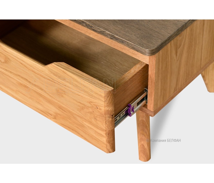Особенности прикроватной тумбы Elva (Эльва): ? Тумба изготовлена из массива и шпона дуба. ? Наличие выдвижного ящика позволяет положить в него любимые мелочи, сохраняя при этом порядок в комнате. ? Ящик имеет качественные направляющие (Европейского про-ва) для плавного открывания и закрывания. ? Изделие покрыто бейц-маслом – экологичным составом из натуральных компонентов. Мебель из массива дерева необыкновенно красива, добротна и славится своим долголетием. Однако, чтобы продлить этот срок, сохранить мебельным изделиям первоначальную элегантность и отличный внешний вид, за ней необходим надлежащий уход. Если у вас появились царапины, следы от кружки или мокрой тряпки, то сервис-бокс от компании BELFAN поможет вам вернуть мебели первозданный вид даже в домашних условиях. Данный сервис-бокс подходит только для мебели в крашении бейц-масло. Примерьте прикроватно тумбу «Elva» у себя дома! Пройдите по ссылке. Видеообзор спальни Elva