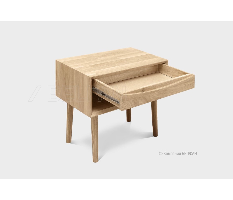 Тумба прикроватная «Ирвинг» (с нишей) Коллекция мебели «Ирвинг» вдохновлена эстетикой Mid-century modern — это стиль лёгкости, порядка и изящных форм, в котором каждая линия оправдана, а каждая деталь продумана. Конструкции на тонких высоких ножках не загромождают пространство и создают ощущение легкости, а текстурный дуб с тёплым крашением вносит в интерьер уют и благородство. Тумба прикроватная «Ирвинг» (с нишей) — воплощение утончённости и практичности в духе Mid-century modern. Тумба визуально лёгкая, с тонкими, изящно сужающимися ножками и минималистичным корпусом. Лаконичный дизайн без лишних деталей подчёркивает натуральную текстуру дуба. Функциональные особенности ? Компактные размеры: 600 ? 520 ? 400 мм — делают тумбу универсальной для любой спальни. ? Верхний выдвижной ящик позволяет удобно хранить личные вещи или аксессуары. ? Под ним — открытая ниша, в которую можно положить книгу, планшет или зарядное устройство. ? Три варианта крашения: — Бейц-масло — тёплый оттенок с натуральной глубиной. — Графит — стильный тёмный тон для контрастных интерьеров. — Беленый дуб — светлая, скандинавская палитра. Экологичность и материалы ? Тумба изготовлена из массива дуба — прочного, долговечного и экологически чистого материала. ? В качестве покрытия используется масло на натуральной основе, оно подчёркивает природный рисунок древесины и сохраняет её тактильную теплоту В интерьере Благодаря своему воздушному силуэту и мягкой геометрии, тумба прикроватная «Ирвинг» с нишей органично вписывается в современный интерьер. Идеально сочетается с одноимённой кроватью, а также с комодами коллекции «Ирвинг». Рекомендации по сочетанию ? Для тёплых, уютных интерьеров выбирайте оттенок «бейц-масло» и дополните текстилем в природных тонах. ? «Графит» подчеркнёт глубокие, атмосферные спальни с тёмным полом или акцентной стеной. ? «Беленый дуб» будет идеален в светлых скандинавских или экостилях, особенно с элементами зелени и текстурой льна. Рекомендации от BELFAN: Мы рекомендуем воспользоваться услугой профессиональной сборки от BELFAN — чтобы сохранить гарантию и быть уверенными в точной установке всех элементов. Мебель из массива дерева необыкновенно красива, добротна и славится своим долголетием. Однако, чтобы продлить этот срок, сохранить мебельным изделиям первоначальную элегантность и отличный внешний вид, за ней необходим надлежащий уход. Если у вас появились царапины, следы от кружки или мокрой тряпки, то сервис-бокс от компании BELFAN поможет вам вернуть мебели первозданный вид даже в домашних условиях. Данный сервис-бокс подходит только для мебели в крашении бейц-масло.