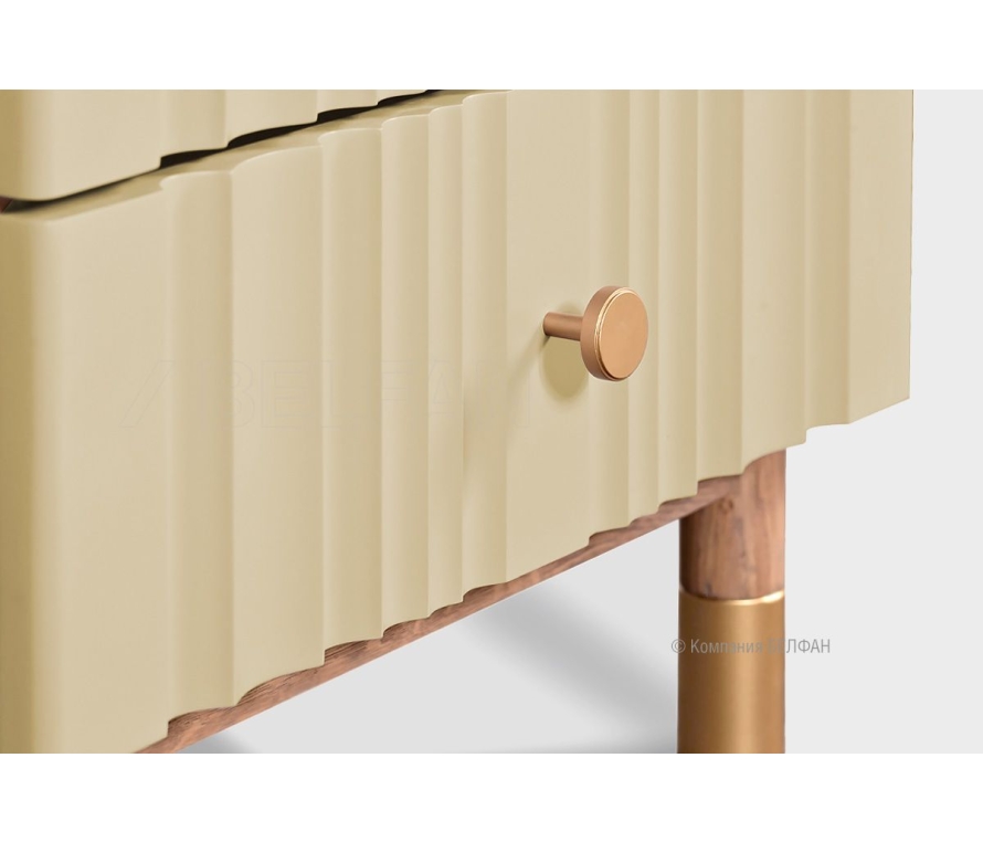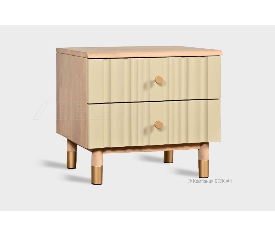 Коллекция Меридиан — это воплощение современного мебельного искусства, где каждая деталь продумана до совершенства. Минималистичные формы, высокие ножки, волнообразные фасады, имитирующие драпировку атласной ткани, и изысканная позолоченная фурнитура создают уникальный образ. Сочетание текстурного массива дуба и фрезерованных фасадов в ультрамодных пастельных тонах позволяет интегрировать коллекцию в различные интерьеры, создавая ваш собственный шедевр. Тумба прикроватная «Меридиан» — это не просто функциональный элемент, а изысканное дополнение к вашей спальне. Её элегантный дизайн и натуральные материалы делают её идеальным выбором для тех, кто ценит стиль и комфорт. Функциональные особенности: ? Размеры: ширина 520 мм, высота 485 мм, глубина 422 мм — оптимальные габариты для размещения в различных помещениях. ? Два выдвижных ящика с надежными направляющими скрытого монтажа для ежедневного использования. ? Цветовые решения: широкий выбор комбинаций крашений, позволяющий подобрать идеальное сочетание для вашего интерьера. Экологичность и материалы ? Материалы: 100% массив дуба в сочетании с МДФ, гарантируют безопасность и комфорт в вашем доме. ? Покрытие: краски на водной основе и масло из натуральных компонентов, которое подчёркивает натуральную текстуру дерева и защищает поверхность. В интерьере Благодаря своему универсальному дизайну, прикроватная тумба «Меридиан» легко вписывается в различные стили интерьера — от современного до классического. Её элегантный облик и натуральные материалы создают атмосферу уюта и гармонии. Рекомендации по сочетанию ? Внутри коллекции: дополните тумбу кроватью, комодами и шкафами из коллекции «Меридиан» для создания цельного образа. ? Сопутствующие товары: рекомендуем подобрать настольную лампу или декоративные элементы, соответствующие стилю тумбы, для максимального комфорта и эстетики. Рекомендация от BELFAN: Изделие поставляется в собранном виде, дополнительной сборки не требуется. Примерьте прикроватную тумбу «Меридиан» у себя дома! Пройдите по ссылке. Видеообзор спальни Меридиан.