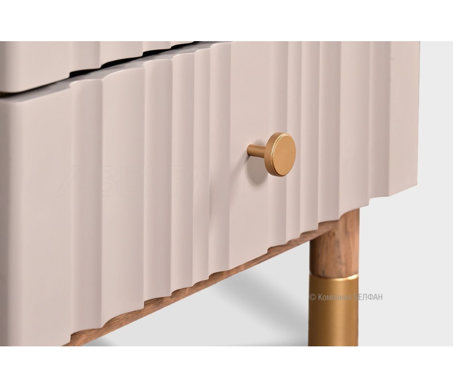 Коллекция Меридиан — это воплощение современного мебельного искусства, где каждая деталь продумана до совершенства. Минималистичные формы, высокие ножки, волнообразные фасады, имитирующие драпировку атласной ткани, и изысканная позолоченная фурнитура создают уникальный образ. Сочетание текстурного массива дуба и фрезерованных фасадов в ультрамодных пастельных тонах позволяет интегрировать коллекцию в различные интерьеры, создавая ваш собственный шедевр. Тумба прикроватная «Меридиан» — это не просто функциональный элемент, а изысканное дополнение к вашей спальне. Её элегантный дизайн и натуральные материалы делают её идеальным выбором для тех, кто ценит стиль и комфорт. Функциональные особенности: ? Размеры: ширина 520 мм, высота 485 мм, глубина 422 мм — оптимальные габариты для размещения в различных помещениях. ? Два выдвижных ящика с надежными направляющими скрытого монтажа для ежедневного использования. ? Цветовые решения: широкий выбор комбинаций крашений, позволяющий подобрать идеальное сочетание для вашего интерьера. Экологичность и материалы ? Материалы: 100% массив дуба в сочетании с МДФ, гарантируют безопасность и комфорт в вашем доме. ? Покрытие: краски на водной основе и масло из натуральных компонентов, которое подчёркивает натуральную текстуру дерева и защищает поверхность. В интерьере Благодаря своему универсальному дизайну, прикроватная тумба «Меридиан» легко вписывается в различные стили интерьера — от современного до классического. Её элегантный облик и натуральные материалы создают атмосферу уюта и гармонии. Рекомендации по сочетанию ? Внутри коллекции: дополните тумбу кроватью, комодами и шкафами из коллекции «Меридиан» для создания цельного образа. ? Сопутствующие товары: рекомендуем подобрать настольную лампу или декоративные элементы, соответствующие стилю тумбы, для максимального комфорта и эстетики. Рекомендация от BELFAN: Изделие поставляется в собранном виде, дополнительной сборки не требуется. Примерьте прикроватную тумбу «Меридиан» у себя дома! Пройдите по ссылке. Видеообзор спальни Меридиан.