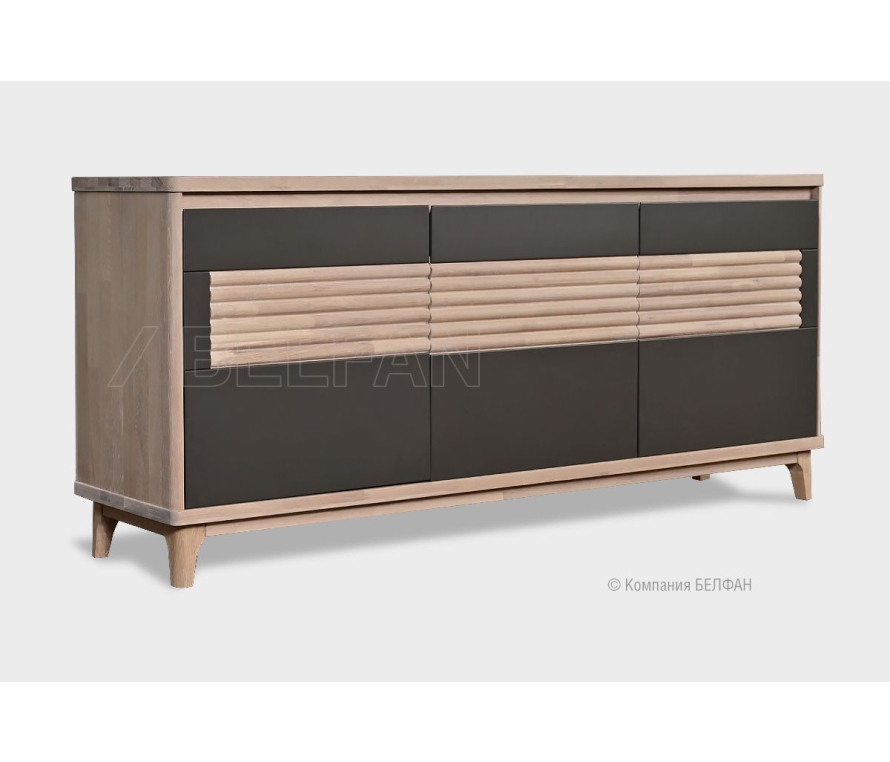 Прикроватную тумбу «Норд» отличают чистота линий и функциональность: она отличается закругленными краями и надежными направляющими полного выдвижения с качественными немецкими доводчиками. Лаконичные фасады выдвижных ящиков не имеют ручек, но такой минималистический стиль находится на пике мебельной моды. Тумба выполнена из дубовых брусков, которые нарочито не подобраны по рисунку, при этом дерево пропитано только бейц-маслом. Дизайнеры тумбы из коллекции «Норд» сделали ставку на естественную простоту и сдержанность и не прогадали. Особенности тумбы прикроватной «Норд» (Nord): ? Тумба изготовлена из 100% массива дуба. ? Современный стиль – экоминимализм. ? Безупречный минималистичный дизайн, который идеально подойдет для квартирного и загородного решения. ? Прямые скруглённые формы идеально дополнят любой современный интерьер. ? Цельные скругленные боковины изделия из благородного массива дуба, которые придают формам мягкость и утонченность. ? Гладкие фасады без лицевой фурнитуры с интегрированными скруглёнными нишами для удобства открывания. ? Ярко-выраженный природный рисунок натурального дерева, искусно подобранный мастерами вручную. ? Надежные направляющие с доводчиками полного выдвижения (европейского пр-ва) обеспечат плотное и бесшумное закрывание ящиков и комфорт ежедневного использования. ? Экологичная отделка: натуральный дуб пропитан бейц маслом (европейского пр-ва) на натуральной основе. На поверхности образуется защитная гидрофобная пленка, благодаря которой покрытие впитывается в структуру дерева, придавая дереву стойкую защиту и подчеркивает природную красоту рисунка. Мебель из массива дерева необыкновенно красива, добротна и славится своим долголетием. Однако, чтобы продлить этот срок, сохранить мебельным изделиям первоначальную элегантность и отличный внешний вид, за ней необходим надлежащий уход. Если у вас появились царапины, следы от кружки или мокрой тряпки, то сервис-бокс от компании BELFAN поможет вам вернуть мебели первозданный вид даже в домашних условиях. Данный сервис-бокс подходит только для мебели в крашении бейц-масло. Примерьте прикроватную тумбу «Норд» у себя дома! Пройдите по ссылке. Схема тумбы прикроватной «Норд» (Nord): Видеообзор спальня Норд