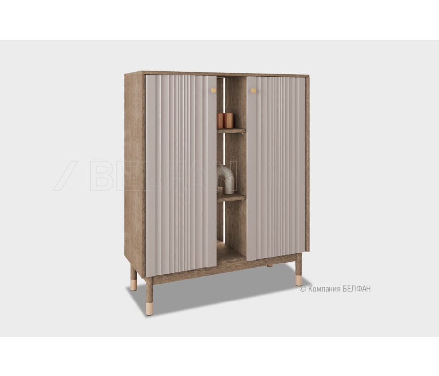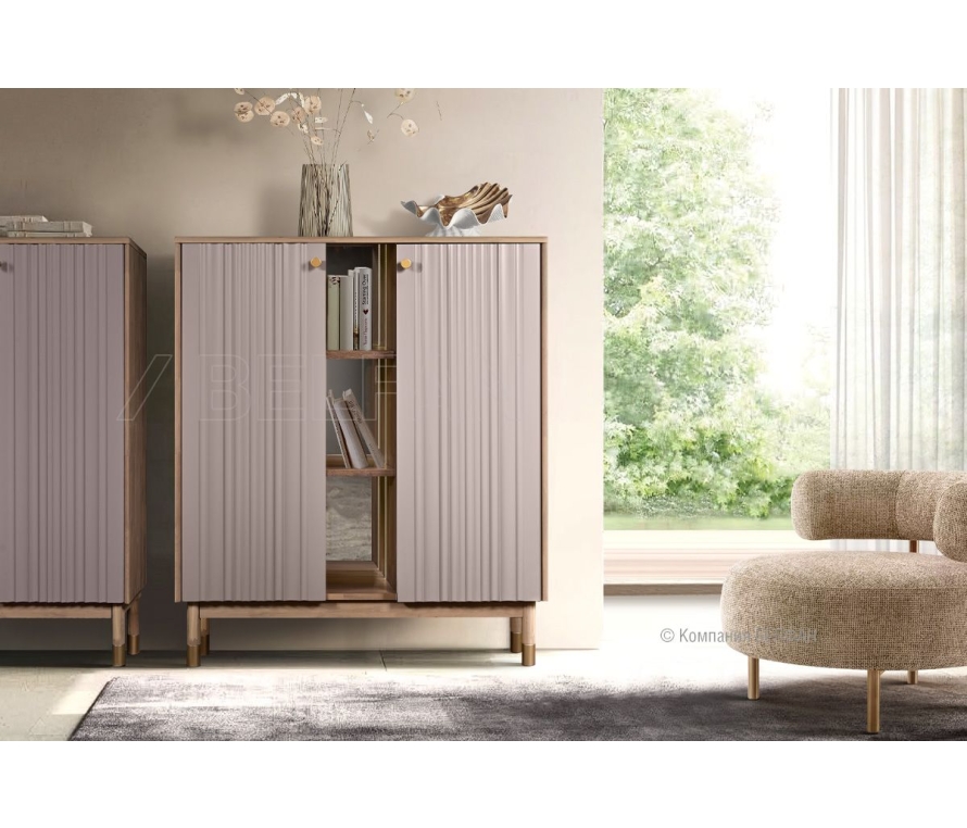 Коллекция «Меридиан» — это диалог между искусством и функциональностью. Лёгкие, текучие фасады с волнообразной фрезеровкой, высокие ножки и утончённая позолоченная фурнитура придают мебели лёгкость и ритм. Она словно оживляет пространство, наполняя его эстетикой и гармонией. Это мебель, в которую хочется всматриваться и к которой приятно прикасаться. Высокая тумба «Меридиан» — это вертикальный акцент, который объединяет в себе декоративность и удобство хранения. Благодаря своей высоте и изящным пропорциям она легко встраивается в интерьер, не перегружая его, а напротив — структурируя пространство. Функциональные особенности: ? Размеры: ширина 1088 мм ? высота 1323 мм ? глубина 422 мм — компактный, но объёмный формат. ? Функциональное внутреннее наполнение, за каждой распашной дверью расположены съемные полки, которые позволяют разместить посуду или элементы декора. ? Центральная открытая ниша оснащена подсветкой, которая включается и выключается движением в нижней части тумбы. ? Крашения: огромный выбор цветовых решений — от нежных пудровых до насыщенных древесных тонов. Экологичность и материалы: ? Конструкция: 100% массив дуба в сочетании с МДФ — надёжность и визуальная лёгкость. ? Покрытие: краски на водной основе и натуральное масло, которое подчёркивает природную текстуру дерева и придает поверхности благородный финиш. В интерьере Благодаря высоте и лёгкому силуэту на ножках, тумба визуально вытягивает пространство и добавляет ритм интерьеру. Эффектно смотрится как в одиночку, так и в паре с более низкими комодами или шкафами. Отлично подходит для спальни, гостиной или даже прихожей. Рекомендации по сочетанию ? С коллекцией «Меридиан»: сочетается с тумбой ТВ, комодами, витринами — создавая завершённое, гармоничное пространство. ? Сопутствующие аксессуары: декор, матовый светильник или ваза. Рекомендация от BELFAN: Изделие поставляется в собранном виде, дополнительной сборки не требуется. Гостиная «Меридиан», видеообзор БЕЛФАН