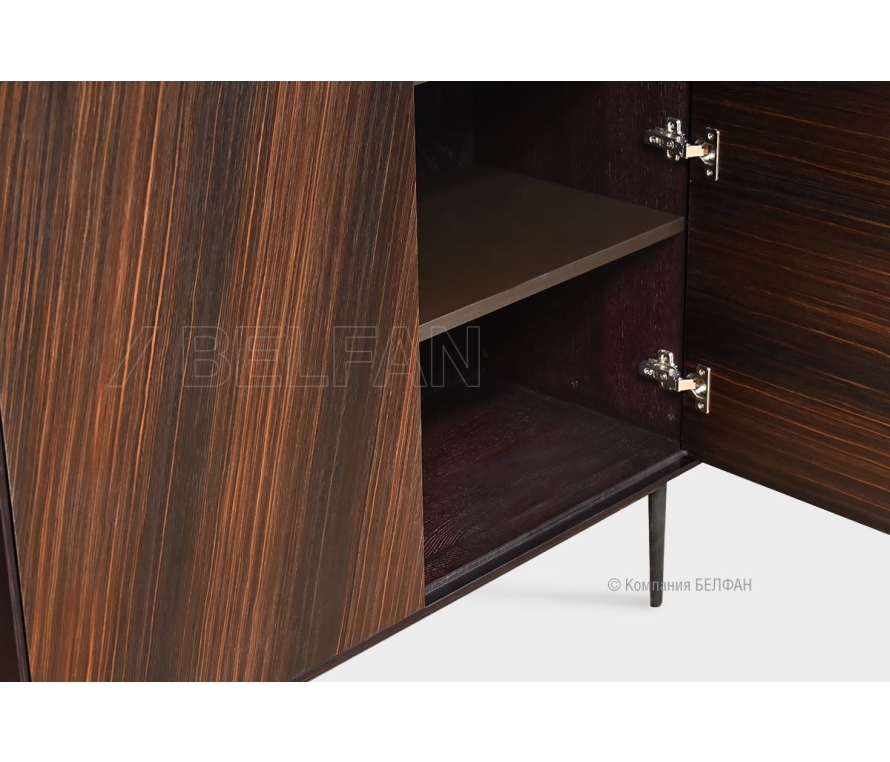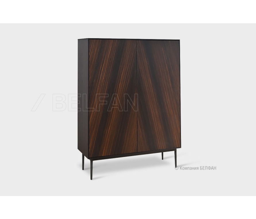 Особенности высокой тумбы «Монреаль» (Monreal): ? Современный минималистичный дизайн с функциональным использованием. ? Акцентные фасады с ярким рисунком благородного кедрового шпона, расположенного под углом в 45 градусов, что придает каждому изделию уникальный вид. ? Контрастное крашение: сочетание темного шоколадного корпуса и ярких фасадов. ? Утонченный корпус изделий. ? Высокие изящные металлические ножки. ? Отсутствие лицевой фурнитуры. ?Покрытие выполнено европейским экологически чистым матовым лаком, что делает мебель максимально безопасной для здоровья, а так же подчеркивает красоту натурального дерева. ? Корпус тумбы изготовлен из шпонированного дубом МДФ класса безопасности Е1. ? Фасады тумбы изготовлены из МДФ класса безопасности Е1, который облицован кедровым мультишпоном. ? Легкое открывание дверей за счет механизма Push-to-Open, который активируется путем нажатия на фасад двери. Схема тумбы: