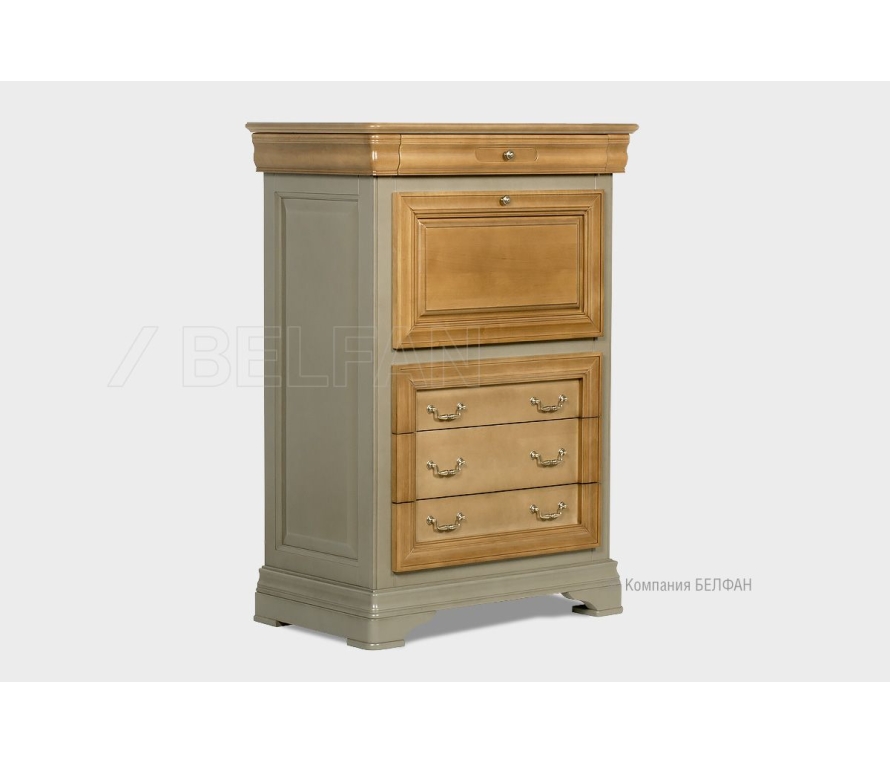 Высокая тумба «Оливия», выполненная в классическом стиле, никогда не выйдет из моды. Она сочетает в себе оригинальный дизайн, где нежные цвета перекликается с оттенком натурального цвета, и функциональность, которая позволит вам поставить тумбу как в гостиной, так и в спальне. В нижней части тумбы располагаются выдвижные ящики, там вы можете хранить любимые предметы. А верхняя часть представлена нишей с откидной дверцей, которую вы можете использовать, как дополнительную поверхность. Тумба выполнена из массива и шпона ольхи, который подарит вашему дому энергетику натурального дерева. Особенности высокой тумбы «Оливия»: ? Высокая тумба изготовлена из массива и шпона ольхи. ? Верхняя дверь у тумбы открывается по типу секретера. Ее можно использовать, как дополнительную поверхность. ? В верхней части ниша с двумя съемными полками. ? Ящики имеют качественные направляющие «Blum» (Австрия). ? В ящиках для деликатных вещей дно отделано велюром. Цвет ткани может разниться в зависимости от изделия. ? Высококачественная лицевая фурнитура Bosetti Marella (пр-ва Италии). ? Экологичное покрытие - окрашено краской и лаком на водной основе.