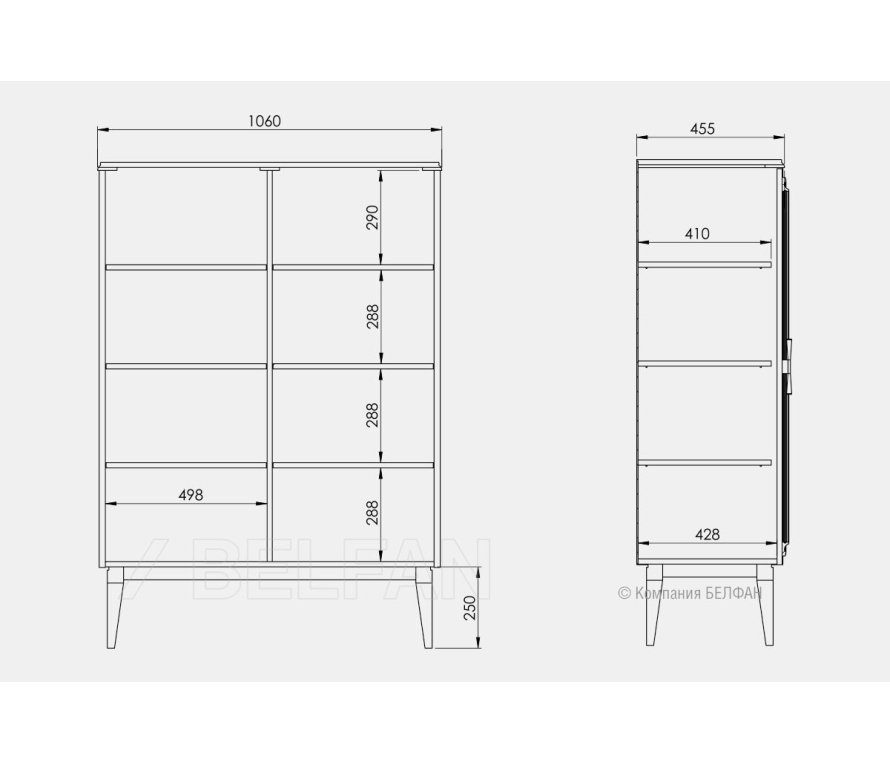 Коллекция «Сакраменто» — это гармоничное сочетание современного дизайна и классических пропорций, создающее мебель с утончённым характером. Чёткие линии, глубокие благородные оттенки, выразительная фурнитура и высокие ножки придают изделиям лёгкость. Тумба высокая «Сакраменто» - это воплощение стильной функциональности. Рельефный профиль фасадов с аккуратной рамочной фрезеровкой подчеркивает классическую эстетику. Высокие ножки из массива дуба придают изделию изящность и лёгкость, а стильная лицевая фурнитура становится стильным акцентом. Функциональные особенности ? Размеры: ширина 1060 мм, высота 1500 мм, глубина 455 мм. ? За каждой распашной дверью расположены по три полки глубиной 410 мм и шириной 498 мм, что позволяет удобно хранить как крупные предметы (посуду, книги, декоративные коробки), так и мелочи, сохраняя порядок в гостиной или кабинете. ? Тумба доступна в двух благородных комбинациях: марципан, орех и сумеречный, орех. Экологичность и материалы ? Багетная рама (декор на фасадах), ножки и царговый пояс изделия изготовлены из массива дуба. ? Корпус и фасады изделия изготовлены из шпонированного дубом МДФ класса безопасности Е1. ? В покрытии изделия используются краски на водной основе и масло из натуральных компонентов, что свидетельствует о безопасности и соответствует высоким стандартам качества. В интерьере В цвете «марципан» тумба подчеркнёт атмосферу лёгкости и уюта, гармонично впишется в современную классику, сканди или неоклассику. Высокие ножки визуально «поднимают» корпус, создавая ощущение простора. Рекомендации по сочетанию ? Идеально комбинируется с витринами, тумбами и навесными шкафами из коллекции «Сакраменто». ? Для акцентного эффекта — добавить ковёр нейтрального тона и тёплое освещение. Рекомендации от BELFAN Мы рекомендуем воспользоваться услугой профессиональной сборки от BELFAN — чтобы сохранить гарантию и быть уверенными в точной установке всех элементов. Примерьте высокую тумбу «Сакраменто» у себя дома! Пройдите по ссылке. Схема тумбы высокой: Видеообзор гостиная Сакраменто