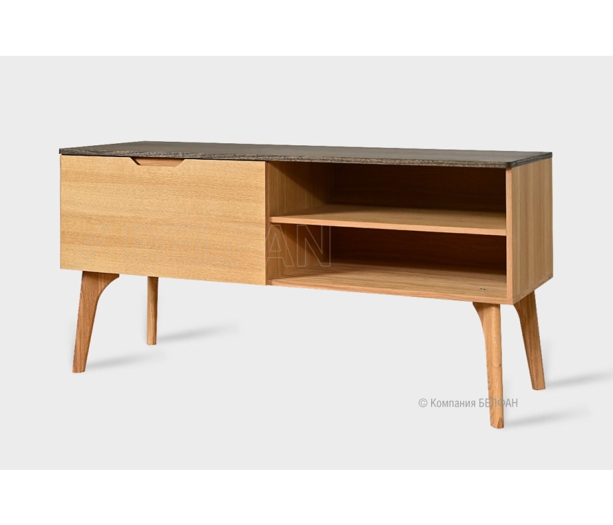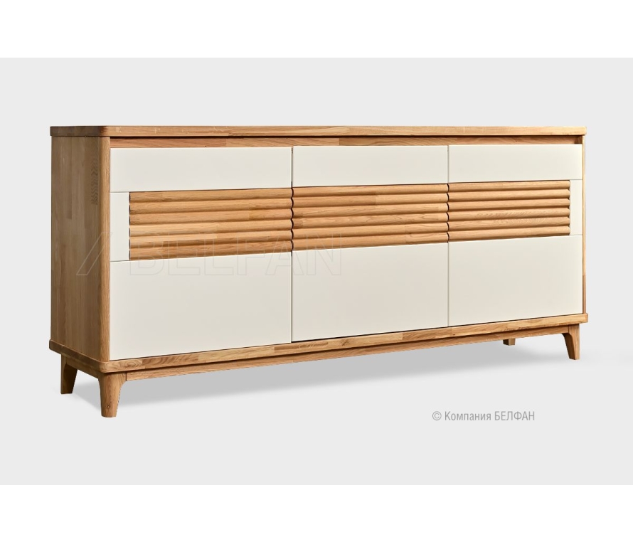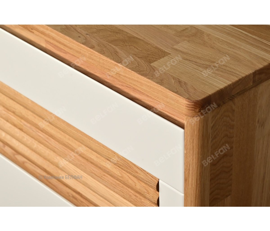 Тумба выполнена в современном стиле Лофт с сочетанием текстуры натурального дерева и акцентных вставок. Светлый оттенок изделия придаст помещению атмосферу упорядоченности и спокойствия. Высокая тумба идеально подходит для гостиной и спальни. Особенности тумбы Wallstreet (Уоллстрит) 3: ? Дверцы тумбы оснащены качественными петлями с доводчиками, которые обеспечивают плавное и бесшумное закрывание. ? Тумба изготовлена из комбинации материалов - массива дуба и эмали. Из массива дуба изготовлен корпус, фасады и вставки с фрезеровкой в цвете «бейц-масло», «белёный дуб», «серый дуб», «графит». ? Массив дуба покрыт только натуральным бейц-маслом, которое защищает древесину от внешнего воздействия и придаёт ей приятный медовый оттенок. ? Удобная высота тумбы позволяет комфортно смотреть телевизор. ? Вставки с фрезеровкой «волна» - изюминка изделия. ? Благодаря высоте ножек под тумбой удобно проводить влажную уборку для предотвращения скопления пыли. ? Легкая и воздушная тумба визуально расширит пространство. Скругленные углы визуально придают мягкость формам. Мебель из массива дерева необыкновенно красива, добротна и славится своим долголетием. Однако, чтобы продлить этот срок, сохранить мебельным изделиям первоначальную элегантность и отличный внешний вид, за ней необходим надлежащий уход. Если у вас появились царапины, следы от кружки или мокрой тряпки, то сервис-бокс от компании BELFAN поможет вам вернуть мебели первозданный вид даже в домашних условиях. Данный сервис-бокс подходит только для мебели в крашении бейц-масло. Примерьте тумбу «Wallstreet» у себя дома! Пройдите по ссылке. Видеообзор гостиная Wallstreet