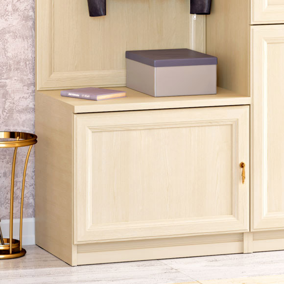 Небольшой комод-тумба для прихожей оборудован одной полкой. Габаритный размер указан по максимально выступающим частям изделия.