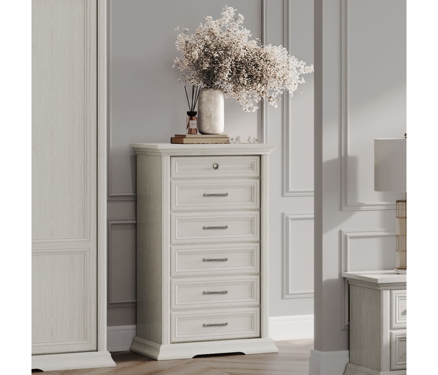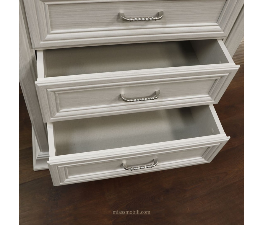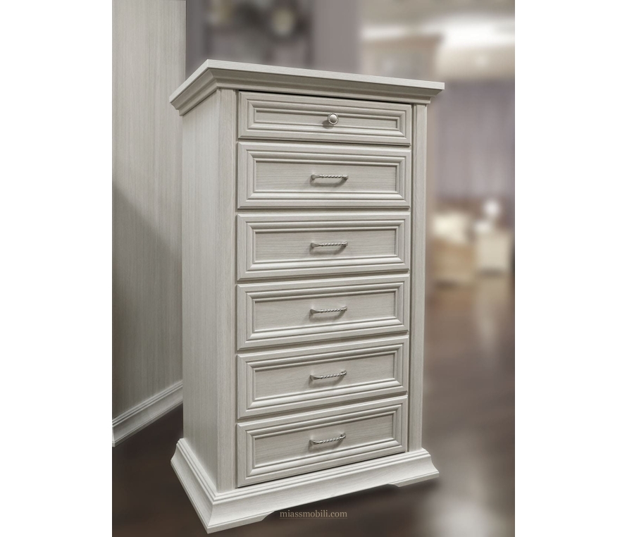 Комод имеет шесть выдвижных ящиков с системой доводки. Габариты указаны по максимально выступающим частям изделия.
