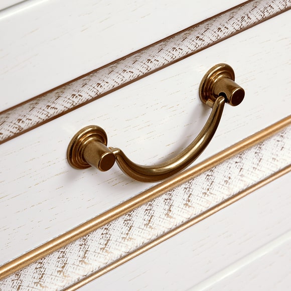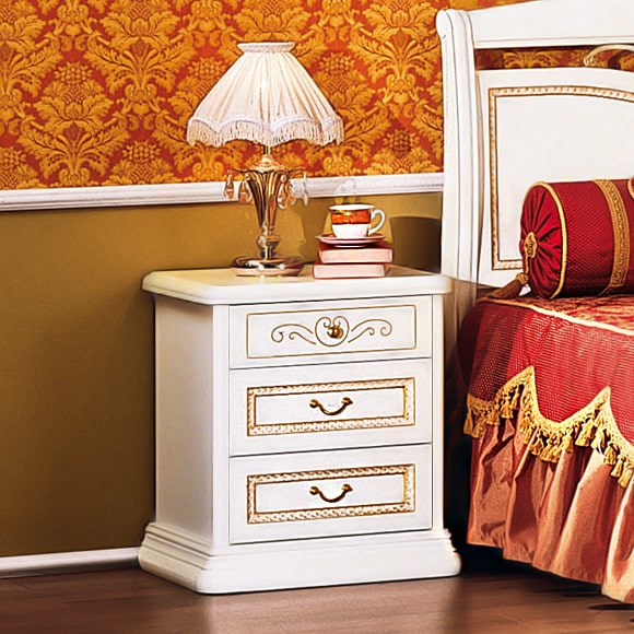 Тумба прикроватная изготовлена с использованием массива и шпона дуба в отделке декапе. Тумба декорирована отделкой с золотом. Габаритный размер указан по максимально выступающим частям изделия.