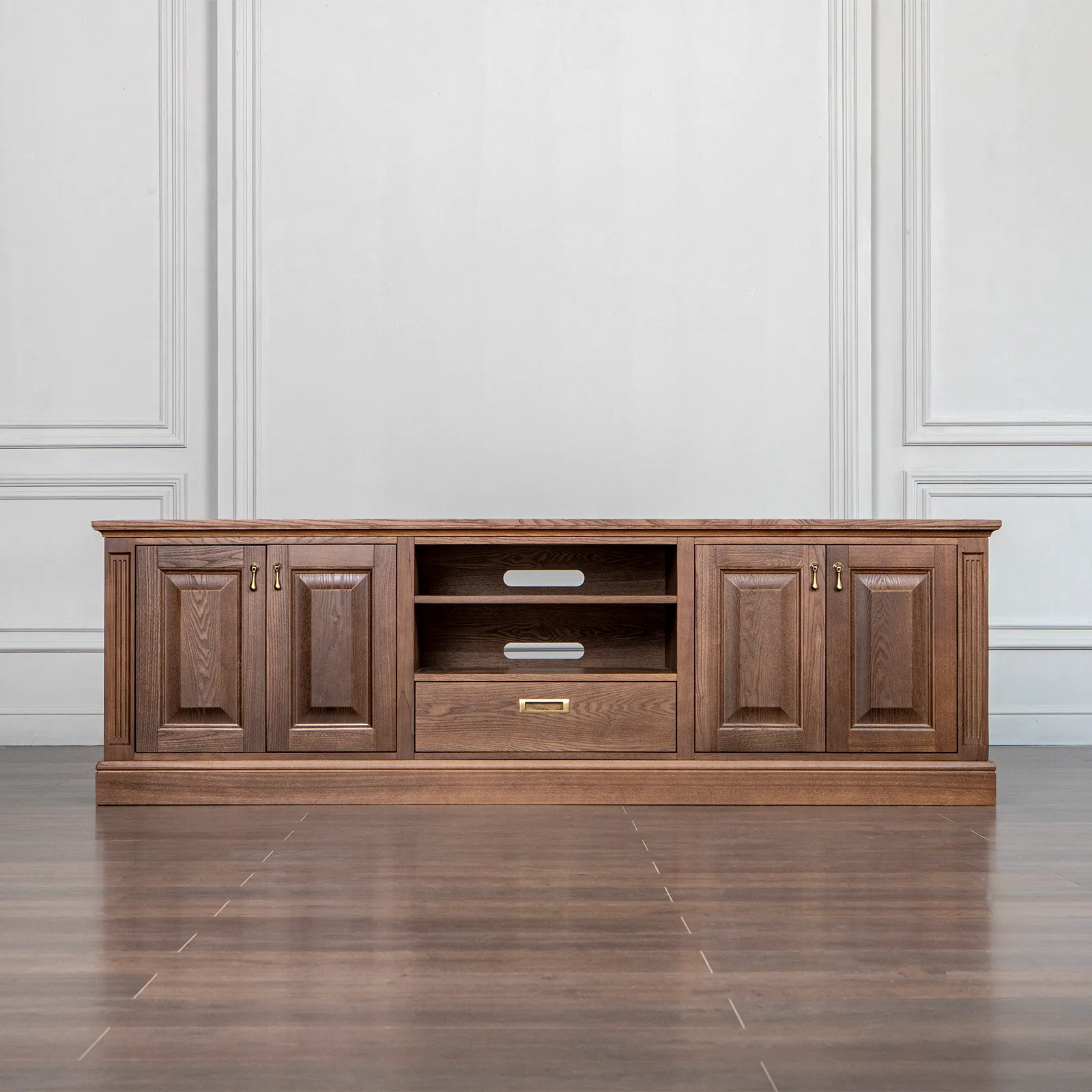 Коллекция мебели TIMELESS и TIMELESS Light — линейка корпусной мебели из массива и натурального шпона ясеня в стиле современной классики. Изготавливается в нескольких цветовых вариантах выкраса, в морилке или эмали с фактурой дерева.* На фото: Медиа-тумба с 7-ю выдвижными ящиками 2070 х 500 х 650 коллекции Timeless из шпона вяза в морилке с сохранением фактуры дерева. *Информацию по наличию мебели, цвету морилки (эмали) и цвету фурнитуры можно уточнить в любом ближайшем салоне, по телефону или оформив предварительный заказ на сайте.