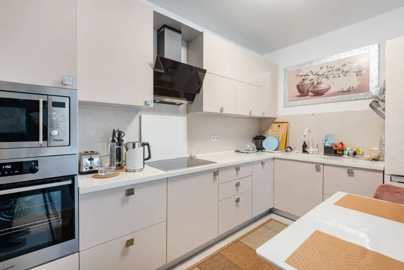 Кухня ЛБОКС16 Волна Система Сатин Бежевый Создайте уютный и стильный интерьер с кухней ЛБОКС16 Волна в современном дизайне! Выполненная в светлых розоватых матовых оттенках, эта компактная Г-образная кухня идеально впишется в интерьер дома, квартиры, студии или дачи. Особенности: - Материал фасадов: Пленка, обеспечивающая долговечность и устойчивость к повреждениям. - Размер: Небольшая, с общей длиной 2,4 м, что позволяет эффективно организовать пространство на площади 8 кв.м. - Форма: Угловая (Г-образная), оптимальная для удобной планировки и экономии места. - Столешница: Искусственный камень с акриловым покрытием — эстетичная и практичная поверхность, устойчивая к бытовым нагрузкам. - Стиль: Минимализм, современный, модерн или скандинавский — универсальный вариант для гармоничного дизайна. Комплектация: - Верхние и нижние шкафы с продуманной системой хранения. - Встроенная вытяжка для создания комфортной атмосферы. - Эргономичная столешница для готовки и сервировки. Подходит как для небольших помещений, так и для просторных гостиных студий. Эта кухня сделает приготовление пищи удовольствием и станет стильным дополнением вашего интерьера!