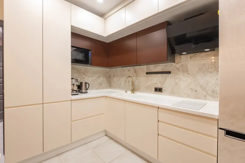 Кухня ЛБОКС7 Эйвон Снежный СофтТач Кухня ЛБОКС7 Эйвон Снежный СофтТач - это стильное и функциональное решение для вашего дома. Выполненная в современном неоклассическом стиле, она впечатляет элегантным дизайном и высокой практичностью. Характеристики: - Форма: Г-образная (угловая), обеспечивает эргономичное использование пространства. - Материал: Пленочные фасады устойчивы к загрязнениям и долго сохраняют свой первоначальный вид. - Цвет: Светлый матовый белый добавляет комнате простора и света. - Размеры: Компактная конструкция длиной 3 м идеально подходит для небольших кухонь площадью до 12 кв.м. - Столешница: Выполнена из искусственного камня (акрил), долговечна и легка в уходе. - Комплектация: - Пенал для хранения вещей. - Встроенная духовка и другая техника. - Корпусные шкафы с продуманной организацией пространства. - Назначение: Предназначена для установки в домашних кухнях. Изысканный дизайн с характерными золотистыми ручками и мраморным фартуком делает эту кухню центральным элементом интерьера. Кухня ЛБОКС7 - это сочетание красоты, функциональности и практичности!