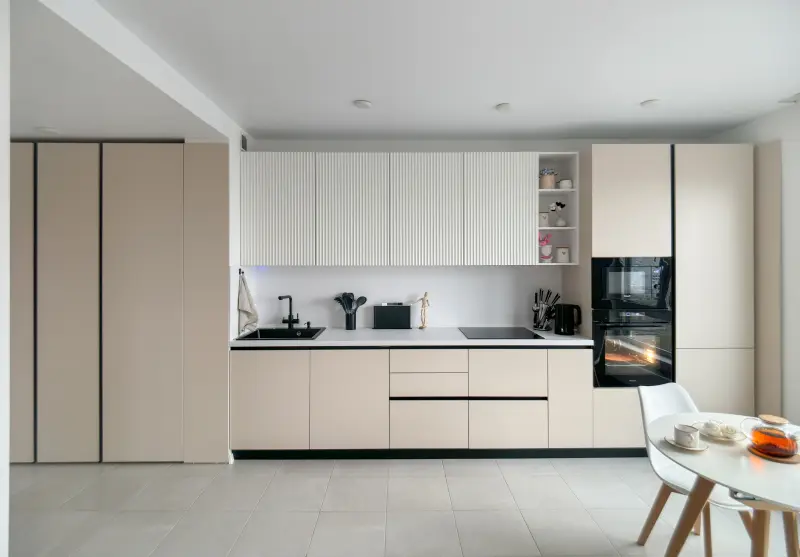 Кухня Лленф201 – это стильное и функциональное решение для современного интерьера. Модель выполнена в прямой форме, что идеально подойдёт для компактного размещения в линейной компоновке помещения. Особенности модели: - Материал фасадов: Эмаль, что обеспечивает высокую износостойкость и лёгкость в уходе. - Цвет: Элегантный бежевый тон, добавляющий уют и тепло в пространство кухни. - Комплектация: Минималистичный дизайн без ручек подчёркивает современные тенденции. - Столешница: Акриловая, гарантирующая долговечность и устойчивость к повреждениям. Кухонный гарнитур выделяется продуманной организацией пространства с вместительными шкафами и открытыми полками. Его универсальный дизайн гармонирует с любым интерьером, предлагая эстетичность и комфорт в использовании. Идеальное сочетание стиля и практичности для вашего дома!