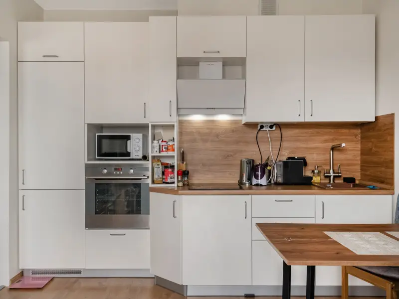 Описание товара: Кухня ЛЛЮБ141 МДФ ПВХ Система Снежный СофтТач Практичная и современная кухня ЛЛЮБ141 МДФ ПВХ Система Снежный СофтТач станет стильным решением для дома, квартиры или дачи. Основные характеристики: - Материал фасадов: Пленка МДФ с покрытием ПВХ, создающим эффект SoftTouch. - Форма: Прямая, компактная и эргономичная. - Дизайн: Современный стиль с элементами минимализма и скандинавского направления. Минималистичные матовые фасады в светлом цвете, выполненные "под дерево", гармонируют с теплым деревянным декором. - Цвет: Матовый белый фасад в сочетании с столешницей из HPL пластика Эггер с текстурой дерева. - Габариты: Идеально подходит для небольших помещений, длина кухни — 2,2 м, а общая площадь — 8 кв. м. Функциональность и комплектация: - Элементы: Пенал для хранения, позволяющий организовать порядок; кухня оснащена современной варочной панелью и встроенной духовкой. - Доводчики: Установлены доводчики для плавного и бесшумного закрывания дверей и ящиков. - Техника: Интеграция кухонной техники делает пространство максимально удобным. - Столешница: Износостойкая столешница из HPL пластика от бренда Эггер, устойчивая к механическим повреждениям и влаге. Кухня ЛЛЮБ141 обеспечивает комфорт и эстетичность за счет продуманной компоновки, универсального дизайна и функциональных элементов. Это идеальное решение для гостиной или функционального пространства как в городской квартире, так и за городом.