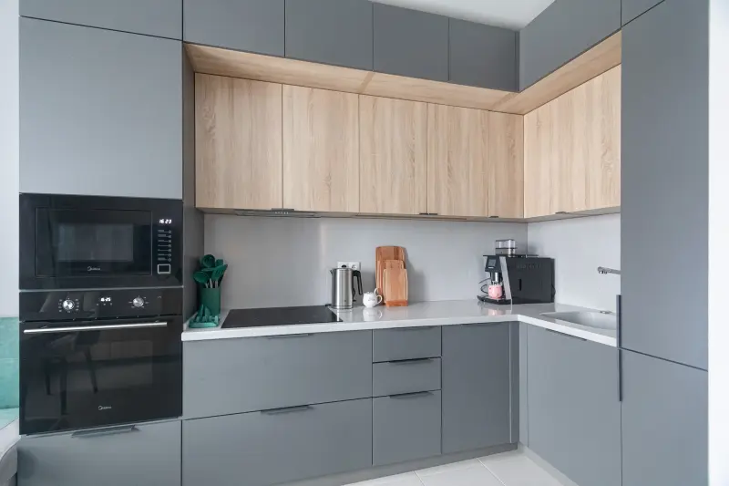 Современная кухня ЛЛЮБЭ1238 Egger H1145-ST10 Дуб Бардолино/AGT Supramat 3014 Серое облако сочетает в себе стиль и функциональность, идеально подходя для современных интерьеров. Особенности: - Материалы: ЛДСП, пластик и пленка обеспечивают долговечность и удобство в уходе. - Дизайн: Г-образная угловая конструкция с удачными сочетаниями: матовый серый фасад и светлые деревянные элементы в стиле "дуб Бардолино". - Размер: Компактная длина 3 м, оптимальная для помещений площадью 12 кв.м. - Столешница: Выполнена из искусственного камня или акрила, что гарантирует прочность и элегантность. - Цветовая гамма: Современное сочетание серого матового и текстуры под дерево делает эту кухню универсальной для стилей лофт, минимализм, скандинавский, модерн или современный дизайн. Комплектация: - Установлена удобная столешница, совмещенная с фартуком для защиты стен. - Встроенный пенал с достаточной вместимостью для хранения. - Проработанная система хранения в верхних и нижних модулях. - Качественная фурнитура и акцент на эргономичность. Назначение: Идеальный вариант для квартиры, дома, дачи или студии. Эта кухня станет гармоничной частью гостиной в открытой планировке пространства. Выбирая ЛЛЮБЭ1238, вы получаете стильный и практичный кухонный гарнитур, который служит надежным решением для любого современного интерьера!