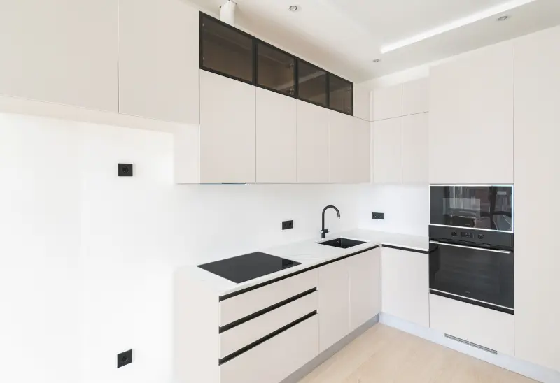 Комплектация: Со встроенными шкафами, Со встраиваемой вытяжкой, Встроенная корпусная мебель, С духовкой, С мойкой в углу, С пеналом