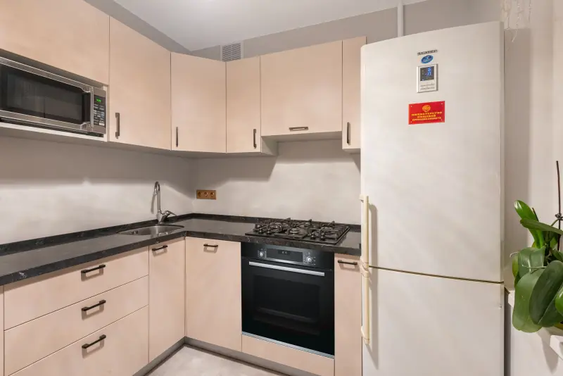 Кухня ЛРАЙ145/МДФ ПВХ Сатин Бежевый / СИСТЕМА Эта современная угловая кухня компактного размера станет идеальным решением для квартир-студий, небольших домов или дач. Выполненная в стильном минималистичном дизайне с элементами модерна и скандинавского стиля, кухня сочетает функциональность и эстетическую привлекательность. Особенности: - Материал: Вся мебель облицована пленкой ПВХ с матовым покрытием, что обеспечивает защиту от повреждений и легкость ухода. - Цвет: Светлый бежево-оранжевый оттенок добавляет тепла и уюта вашему пространству. - Форма: Угловой Г-образный гарнитур удобно вписывается в небольшие помещения, оптимизируя рабочее пространство. - Размеры: Подходит для помещений площадью 8 кв.м, длина гарнитура составляет 1,8 м. - Столешница: Изготовлена из качественного и прочного искусственного камня с акриловым покрытием, устойчива к влаге и механическим воздействиям. - Дополнительно: В комплекте мойка, расположенная в углу для экономии пространства, а также встроенные шкафы, полки и металлические ручки. Назначение: Прекрасный выбор для квартир, студий, загородных домов или дач. Кухня ЛРАЙ145 отличается лаконичным дизайном и функциональностью, сочетая современные материалы с удобством использования.
