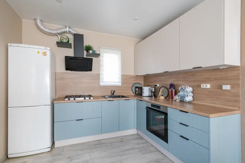 Описание товара: Кухня ЛРАЙ327/МДФ ПВХ Фъод Линен/МДФ ПВХ Система Сатин Бежевый Эта элегантная Г-образная кухня сочетает в себе современный дизайн, функциональность и стиль, что делает её идеальным выбором для дома, квартиры или дачи. Выполненная в светлых матовых тонах и оттенках под дерево, она гармонично впишется в любой интерьер: от минимализма и модерна до скандинавского или кантри. Основные характеристики: - Материалы: Фасады из МДФ с покрытием ПВХ, а также надежная и износоустойчивая столешница из пластика Эггер HPL. - Цветовая гамма: Сочетание оттенков слоновой кости и бледно-голубого с текстурой "под дерево". - Форма: Г-образная, угловая — идеально для оптимизации пространства. - Размеры: Длина 2,4 м, подходит для небольших помещений площадью до 12 кв.м. - Комплектация: Включает мойку, варочную панель, духовой шкаф, столешницу и фартук в едином стиле, а также выделенную зону для установки техники. - Назначение: Для гостиной, дома, дачи или городской квартиры. Стиль и комфорт: Кухня оформлена в современном духе с элементами минимализма, подчеркивая практичность и эстетичность. Светлые матовые фасады и деревянная текстура столешницы создают уютную атмосферу, добавляя лёгкости и шарма интерьеру. Преимущества: - Эргономичное расположение рабочих зон. - Высокая функциональность, включая оснастку техникой. - Модульная конструкция для удобства планировки. Эта кухня станет идеальным выбором для тех, кто ценит сочетание эстетики и практичности!