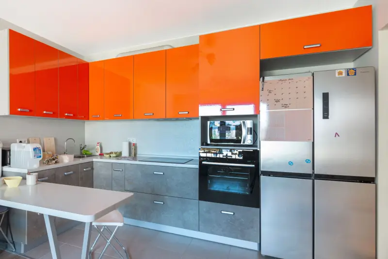 Кухня ЛРУМ155 Постформинг-8: Климентин F 2962 GLS Яркая и стильная кухня, выполненная в современном и модном дизайне. Основные характеристики: - Материалы: фасады из высококачественного пластика, сочетающего долговечность и легкость в уходе. Столешница — пластик HPL от производителя Эггер. - Форма: угловая (Г-образная), оптимально использующая пространство. - Стиль: современный и модерн, который подчеркивает глянцево-оранжевые фасады и текстуру металлика. - Цветовая гамма: сочетание яркого оранжевого с металлическими и нейтральными оттенками для гармоничного облика. - Размеры: компактные размеры (длина 2,3 м) идеально подходят для небольших кухонь или студий площадью до 12 кв. м. Комплектация: - Столешница из прочного HPL пластика. - Встроенная корпусная мебель. - Встроенная мойка. - Пенал для хранения. Кухня создана для тех, кто ценит функциональность, стиль и качество. Удобное размещение позволяет использовать ее даже в ограниченном пространстве. Идеальный выбор для студий и небольших квартир.