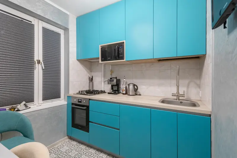 Кухня LРУМЭ803 Slide-S01, цвет 100 Элегантная и функциональная кухня LРУМЭ803 Slide-S01 идеально впишется в интерьер современной студии. Модель выполнена в светлом матовом оттенке слоновой кости, что визуально расширяет пространство и создает уютную атмосферу. Преимущества и особенности: - Материалы: Фасады из стекла и пленки обеспечивают долговечность, а стильная поверхность легко поддается уходу. - Форма: Угловая L-образная конструкция с барной зоной оптимально подходит для небольших помещений и позволяет создавать комфортные рабочие и обеденные зоны на площади до 10 кв.м. - Комплектация: Кухня включает встроенную духовку, эргономичную столешницу из искусственного камня и акрила, а также стильные витрины, идеально дополняющие современный дизайн. - Назначение: Отличное решение для квартир-студий и компактных кухонь, где важны функциональность и стиль. Кухня не только работает как место для готовки, но и добавляет эстетики и удобства каждому дню. Маленькие размеры длиной 2 метра делают модель подходящей для установки даже в ограниченном пространстве. Мебель прекрасно гармонирует с современным и модерн-стилем интерьера. Создайте уют и комфорт вместе с кухней LРУМЭ803 Slide-S01!