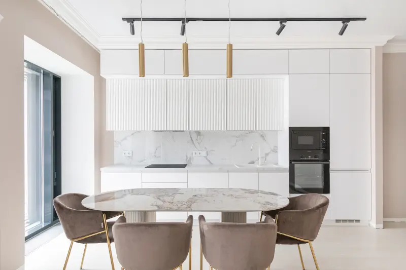 Кухня ЛТШЭ6105/AGT 734 Белый матовый (SOFT TOUCH WHITE) / Slide S02 RAL 9003 Глянец — это элегантное решение для создания современного и стильного интерьера. Выполненная в прямой форме, модель идеально подходит для квартир, домов и гостиных, предлагая высокую функциональность и утончённый дизайн. Основные характеристики: - Материал: Пластик, эмаль, плёнка — обеспечивает долговечность и лёгкость в уходе. - Цвет: Светлый белый матовый с глянцевыми акцентами — добавляет ощущение простора и света. - Размеры: Длина — 4 м, площадь — 18 кв.м, подходит для просторных помещений. - Столешница: Выполнена из искусственного камня (акрил), устойчива к влаге и механическим повреждениям. Комплектация: - Варочная панель для удобства приготовления. - Духовка и пенал, вписанные в общий стиль. - Мойка, функционально встроенная в рабочую зону. - Полноценная столешница, обеспечивающая комфортное рабочее пространство. Стиль: Кухня выполнена в современном и модном стиле модерн, гармонируя с элементами интерьеров в минималистичном и светлом дизайне. Лаконичные линии и сочетающиеся покрытия делают её универсальным выбором для любого дома. Эта кухня станет не только функциональной зоной, но и центральным элементом интерьера, подчеркивая ваш тонкий вкус и стремление к совершенству.