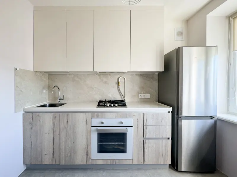 Описание товара: Кухня ЛТШФ6174\AGT 647 Бьянко Глянец/Egger H1176-ST37 Дуб Галифакс белый Эта стильная и функциональная кухня идеально подойдет для небольших пространств и офиса. Она выполнена в современном минималистичном дизайне с элементами скандинавского стиля. Компактная прямая конструкция длиной 2,3 м позволяет оптимально использовать площадь до 10 кв. м. Особенности: - Материалы: корпус выполнен из ЛДСП, фасады – из пластика и пленки высокого качества, а столешница – из искусственного камня на основе акрила. - Цветовое решение: нейтральные светлые тона, комбинирующие текстуру дерева и матовые поверхности, добавляют ощущение уюта и света. - Комплектация: встроенная духовка и варочная панель, доводчики на всех шкафах, скрытые петли и мебель без ручек делают модель практичной и современной. Также предусмотрена встроенная вытяжка, оптимальная для небольших помещений. - Функциональность: идеально подходит для интенсивной эксплуатации благодаря качественным материалам и продуманной организацией пространства. Эта кухня станет не только удобной рабочей зоной, но и стильным элементом интерьера, добавив элегантности вашему помещению.
