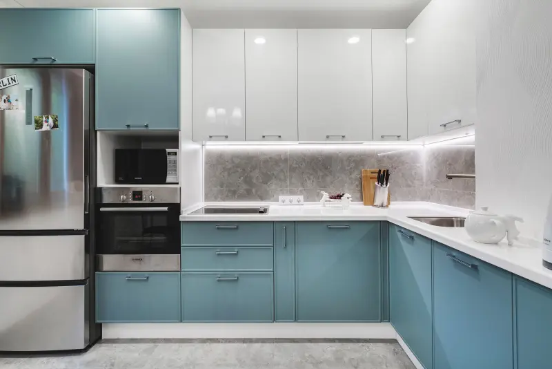 Кухня ЛТВД154 / Постформинг Белый Индустриальный / Хаген Фьорд Элегантная Г-образная кухня, идеально подходящая для современного интерьера. Она выполнена в светлых оттенках белого и мягкого мятного, создавая гармоничное сочетание минимализма и уюта. Характеристики: - Материалы: Эмаль и пленка, обеспечивающие практичность и долговечность. - Форма: Угловая Г-образная конструкция, оптимальная для помещений с площадью 12 кв.м. - Размеры: Общая длина кухни - 3,3 м, подходит для узких и просторных помещений. - Стиль: Современный, модерн, скандинавский, с элементами прованса и деревенского стиля. - Фасады: Матовые и глянцевые поверхности в белом и мятном оттенках добавляют глубину дизайну. - Столешница: Изготовлена из искусственного камня и акрила, обеспечивает прочность и легкость в уходе. - Комплектация: Оснащена встроенной корпусной мебелью с доводчиками, пеналом, мойкой и качественной столешницей. Особенности: Кухня спроектирована с учетом функциональности и комфорта. Светодиодная подсветка рабочей зоны делает интерьер более современным и удобным для готовки. Благодаря использованию материалов высокого качества, кухня подходит как для дома и квартиры, так и для студии или гостиной. Кухня ЛТВД154 — это эстетика, стиль и практичность, которые создадут уют в вашем доме!