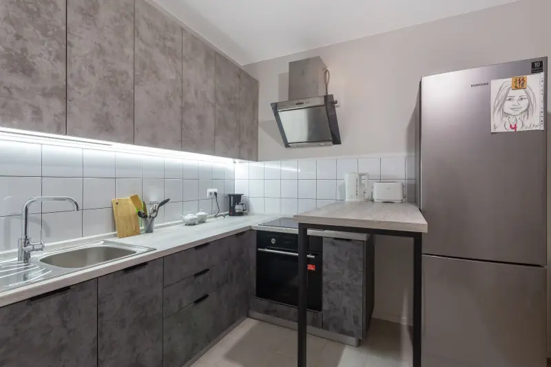 Кухня ЛТВД264 МДФ3-Хаген Фьерд — это сочетание стильного дизайна и функциональности, идеально подходящее для небольшой квартиры. Выполнена в прямой форме, что обеспечивает максимальную эргономику и удобство даже в ограниченном пространстве с площадью 10 кв.м. Особенности модели: - Материалы: Фасады покрыты износостойкой и долговечной пленкой, столешница выполнена из высококачественного пластика Эггер HPL, устойчивого к механическим повреждениям. - Цветовая гамма: Белые глянцевые и голубые матовые элементы создают свежий и светлый интерьер, подходящий для стилей минимализм и скандинавский. - Размеры: Компактные, длина кухни составляет 3,6 м, что отлично впишется в небольшие помещения. - Комплектация: Включает встроенную корпусную мебель, удобный пенал с просторными секциями, встроенную мойку и предусмотренные места для бытовой техники. Эта кухня подчеркнет изысканный стиль вашей квартиры, создавая уютную и современную атмосферу для приготовления пищи и времяпрепровождения.