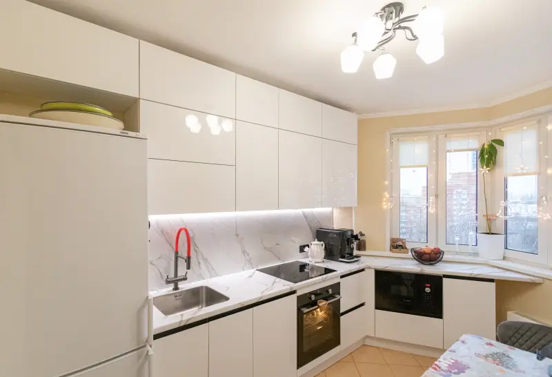 Комплектация: С доводчиками, Со столешницей, Без ручек, Со встраиваемой вытяжкой, Встроенная корпусная мебель
