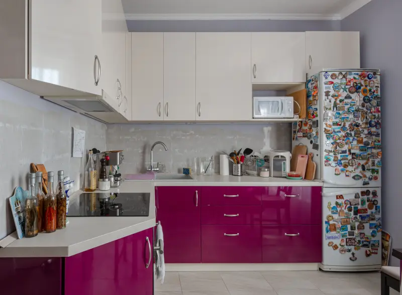 Угловая кухня ЛВПЭ13 Formica F7932 GLS "Античный" Эта стильная и функциональная кухня идеально подходит для небольших квартир. Разработанная в современном стиле, она выполнена в глянцевом исполнении мягких пастельных оттенков слоновой кости и нежно-розового цвета, которые придают пространству уют и визуально расширяют его. Основные характеристики: - Материал: пластик высокого качества с долговечной и устойчивой к повреждениям столешницей из HPL пластика производства Egger. - Форма: Г-образная – оптимальное решение для экономии пространства. - Размеры: компактные – длина 2,8 м, площадь кухни – 10 кв.м. - Цвет: гармоничная комбинация светлого слоновой кости и акцентного розового цвета с глянцем. - Комплектация: встроенная корпусная мебель, эргономичная угловая мойка, просторные ящики для хранения и практичная рабочая поверхность. - Назначение: для квартиры – обеспечивает функциональность и стиль даже в ограниченном пространстве. Модель сочетает в себе практичность, современный дизайн и комфорт в использовании. Угловая мойка способствует оптимальной организации рабочего процесса, а яркий, но ненавязчивый дизайн создаёт лёгкую атмосферу. Выбирая эту кухню, вы получаете не только стильное, но и удобное решение для своего дома.