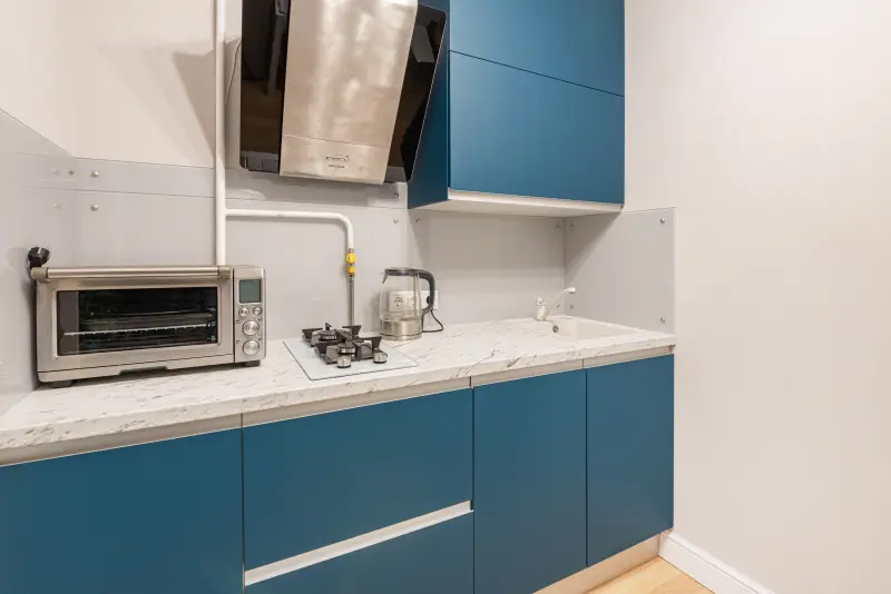 Кухня ЛВПЭ33/AGT №3029 Glamorous Pacific Маленькая, но стильная и функциональная кухня идеально впишется в современный интерьер, будь то квартира, офис, студия или дача. Основные характеристики: - Материалы: Пластик и пленка, что обеспечивает долговечность и устойчивость к влаге. - Цвет: Матовый темно-синий оттенок придает кухне элегантность и современность. - Дизайн: Лаконичный прямой формат в стиле минимализма, скандинавского или модерн. - Размеры: - Длина: 2 метра - Площадь: 6 кв.м — компактное решение для небольших помещений. - Комплектация: В комплекте идет удобная мойка и прочная столешница из HPL (Эггер пластик). Преимущества: - Элегантный внешний вид, подходящий для современного интерьера. - Удобная организация пространства, включающая все необходимое для готовки. - Компактность — решение для небольших помещений. Кухня ЛВПЭ33/AGT №3029 Glamorous Pacific — это яркое решение для тех, кто ценит стиль и функциональность.