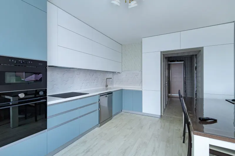Кухня ЛВПЭ37\№1 ФПТ №3012 идеально сочетает функциональность, стиль и современный дизайн. Эта угловая Г-образная кухня выполнена в светлых бело-голубых тонах с матовой поверхностью, что привнесет легкость и элегантность в интерьер. Основные характеристики: - Материал: Пленка, обеспечивающая долговечность и простоту ухода. - Форма: Г-образная, удобная для рационального использования пространства. - Стиль: Идеально вписывается в минималистичные, скандинавские и современные интерьеры. - Цвет: Светлый белый с голубыми элементами, создающими гармоничный и свежий облик. - Размер: Подходит для большого помещения, длина кухни — 4 м, общая площадь составляет 18 кв.м. - Комплектация: - Пенал для хранения. - Посудомоечная машина для удобства хозяйства. - Столешница из акрила и искусственного камня, обеспечивающая прочность и изысканный внешний вид. Преимущества: - Подходит для квартиры, дома, дачи или гостиной. - Надежные и долговечные материалы. - Эргономичный дизайн с достаточным количеством мест для хранения. - Современная бытовая техника интегрирована в композицию. Кухонный гарнитур ЛВПЭ37\№1 ФПТ №3012 станет идеальным решением для тех, кто ценит комфорт, функциональность и стильную современность!