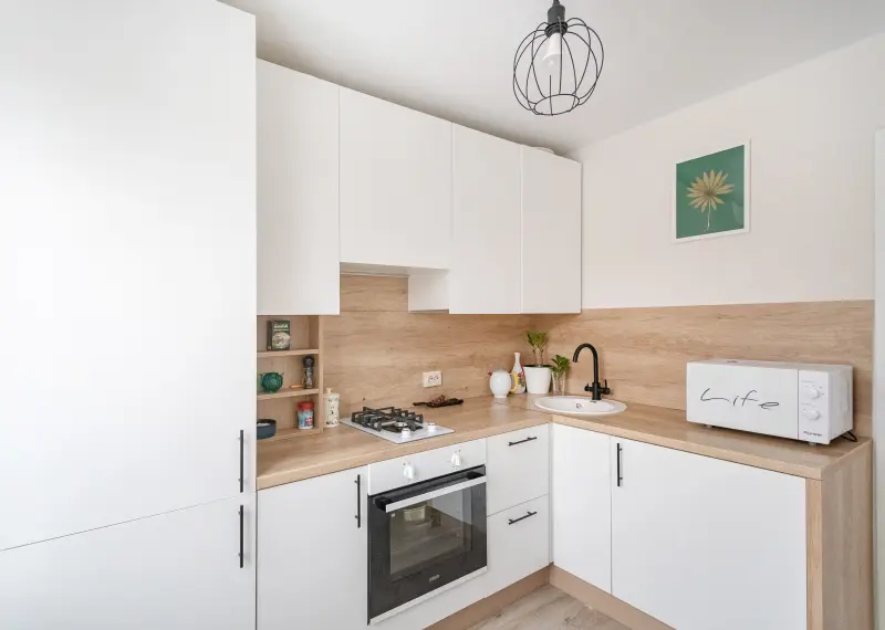 Кухонный гарнитур ЛВПЭ83/Fenix NTM (Италия) 0032 Bianco Kos — это стильное и функциональное решение для современных интерьеров. Этот Г-образный (угловой) кухонный комплект отличается компактными размерами (длина — 2 м) и общей площадью 8 кв. м, делая его прекрасным выбором для небольших пространств: дома, квартиры, студии, офиса или дачи. Ключевые особенности: - Материалы и дизайн: Гарнитур выполнен в современном стиле с элементами минимализма и скандинавского дизайна. Матовый светлый фасад под дерево в сочетании с белым цветом создаёт уют и визуально увеличивает пространство. - Столешница и фартук: Столешница сделана из пластика (HPL) от производителя Egger, обеспечивая надежность и долговечность. Фартук гармонично дополняет общий дизайн кухни. - Комплектация: Модуль оснащен пеналом для удобного хранения, встроенной столешницей и декоративным фартуком, что делает его полностью готовым к эксплуатации. - Функционал и эргономика: Удобные ниши и продуманные элементы впишутся в любые требования практичной хозяйки. Эта кухня идеально подойдет для любой жизненной ситуации: будь то загородный дом, современная городская квартира или студия открытой планировки. Её универсальность и светлая цветовая палитра освежат интерьер и создадут атмосферу уюта и гармонии.