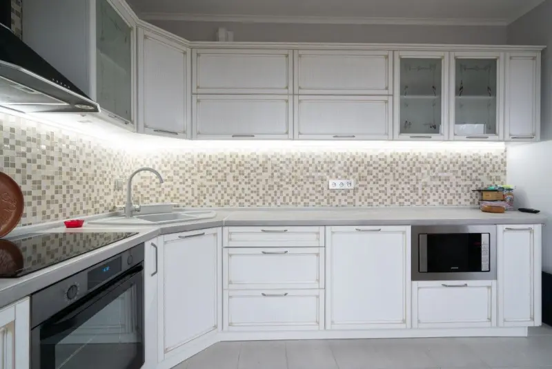 Комплектация: Со столешницей, С витриной, Встроенная корпусная мебель, С доводчиками, С мойкой в углу, С посудомоечной машиной