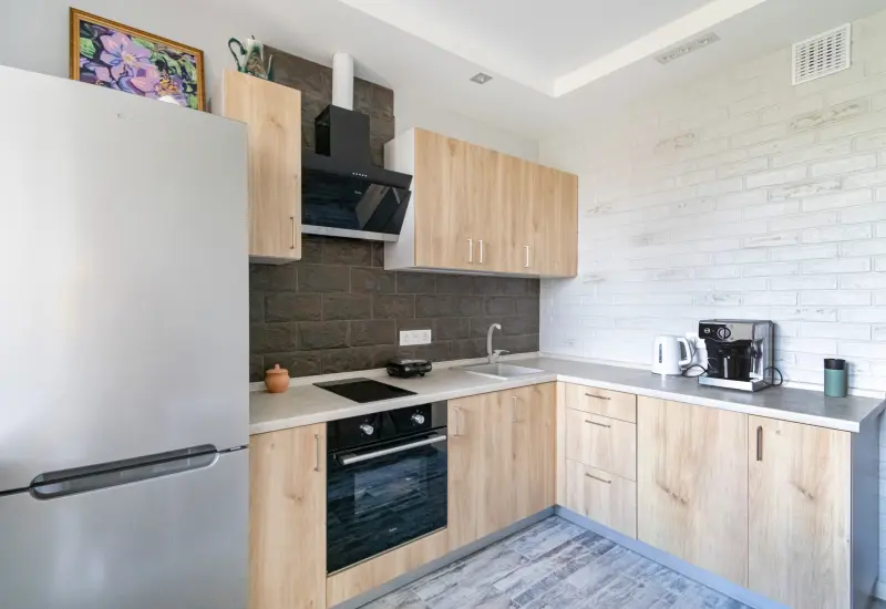 Фасад: ЛДСП Дуб Медовый верт.Столешница: КЕРАМИКА ТЕССИНА 38ммКорпус: СЕРЫЙ КАМЕНЬ-18Цена указана на момент заключения договора на изготовление данного проекта (10.01.2023 г.)
